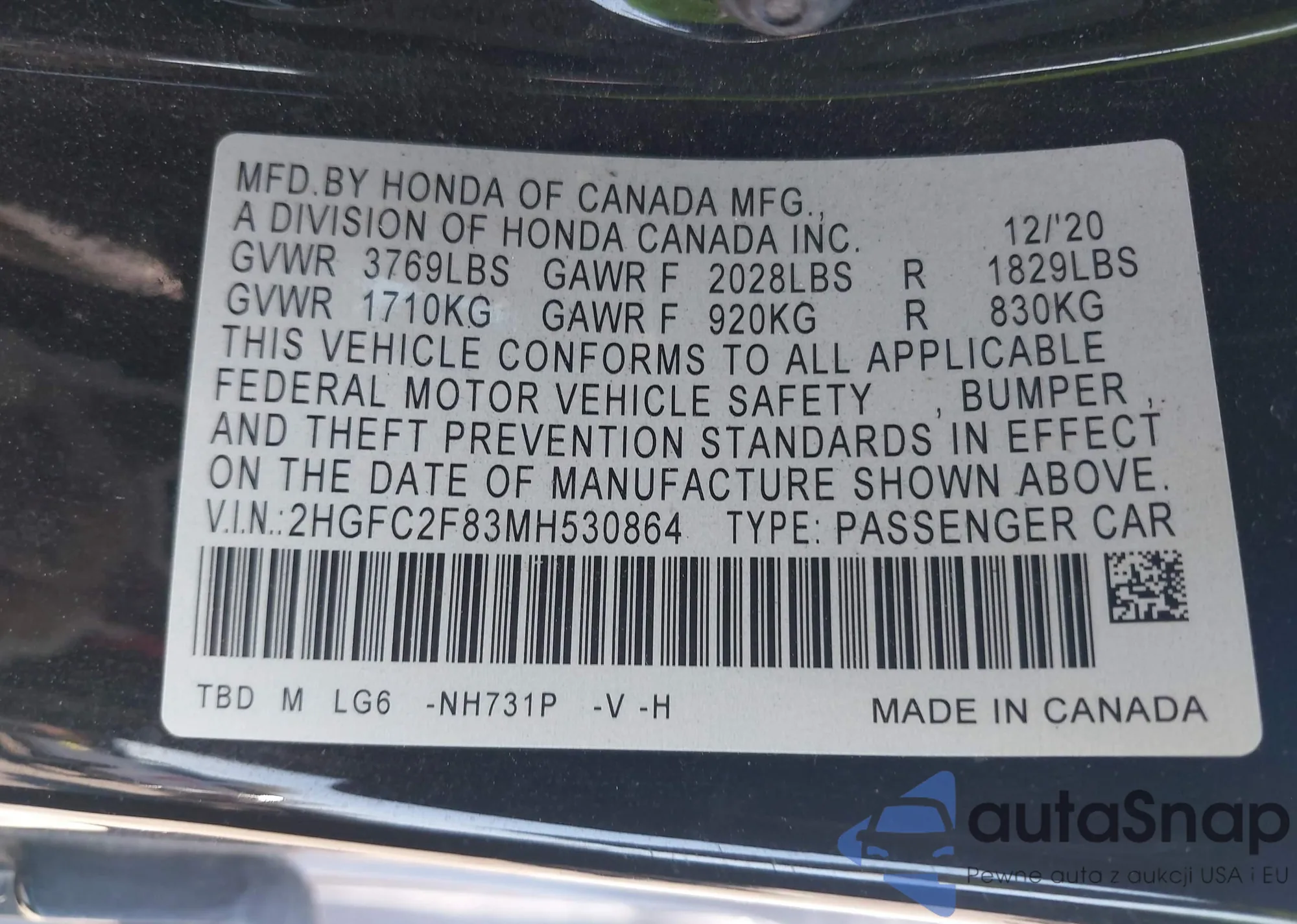 LOT: 42887003 VIN: 19XFB2F82CE366986