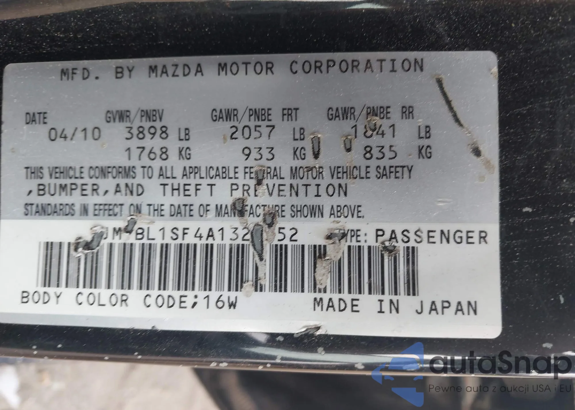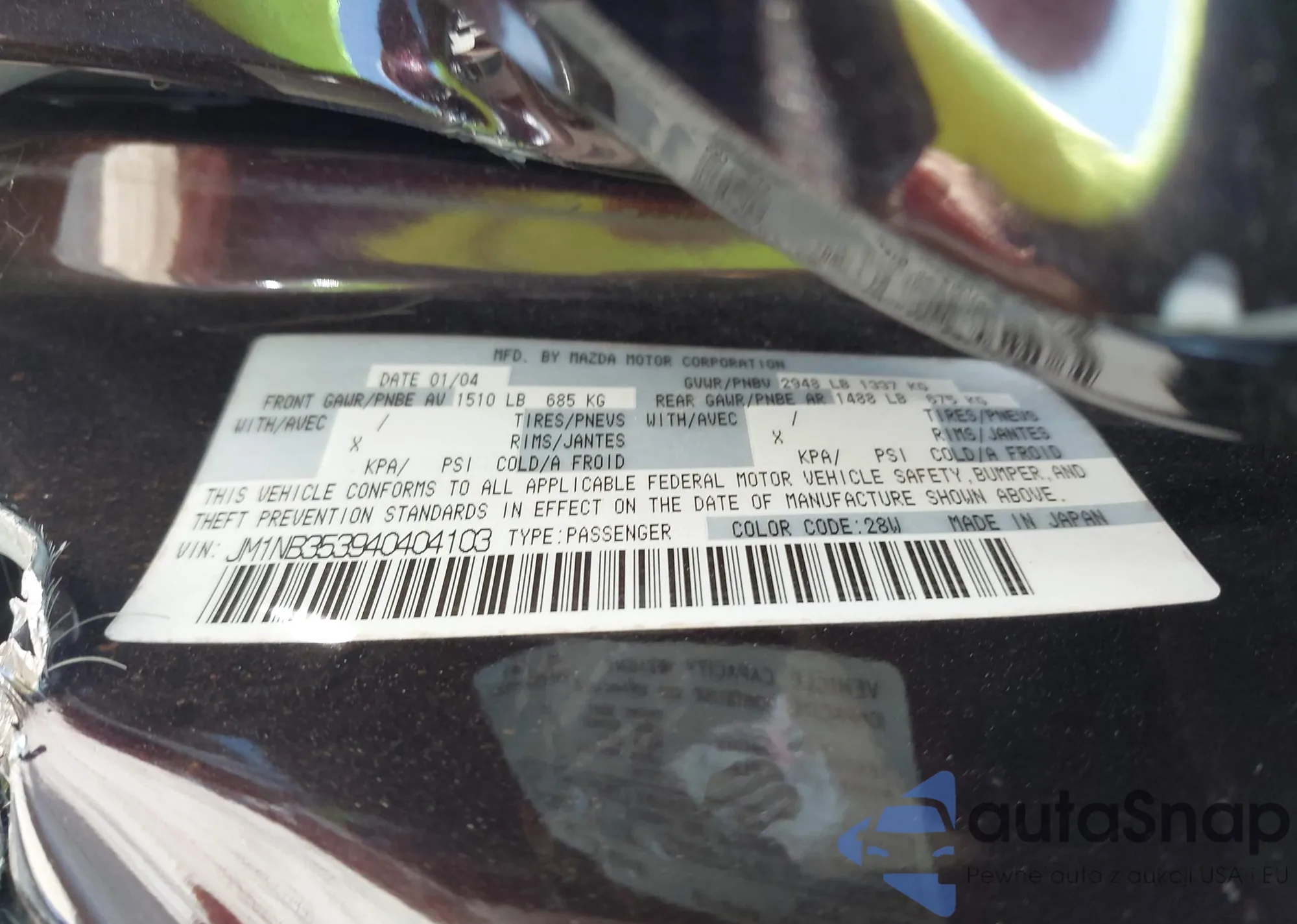 LOT: 43260994 VIN: JM1NB353940404103