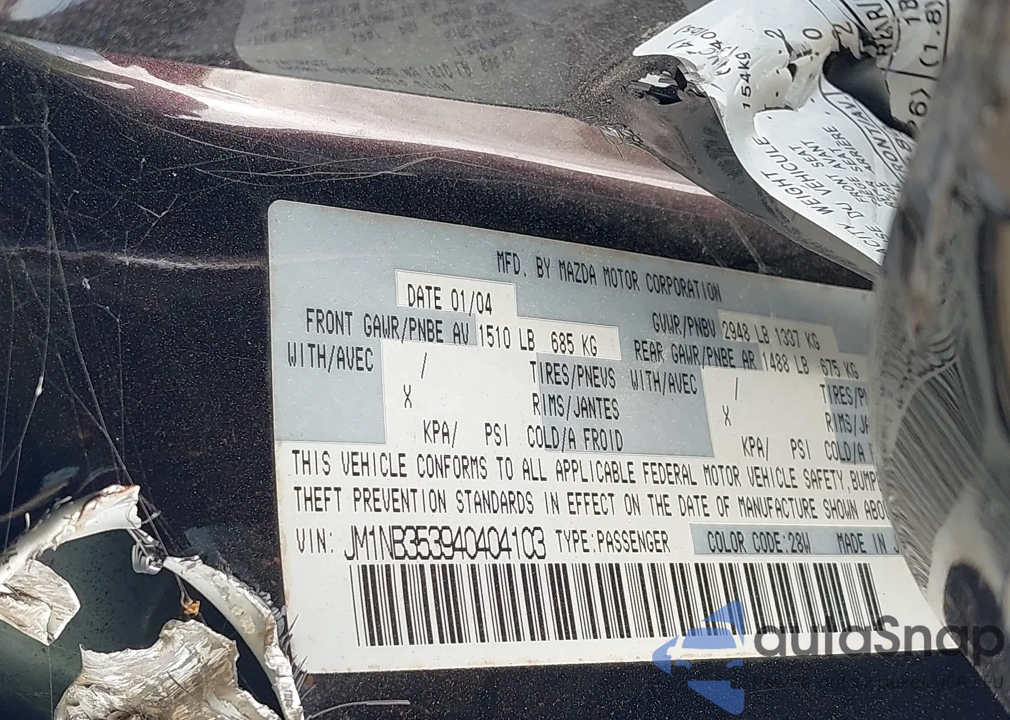 • VIN JM1NB353940404103