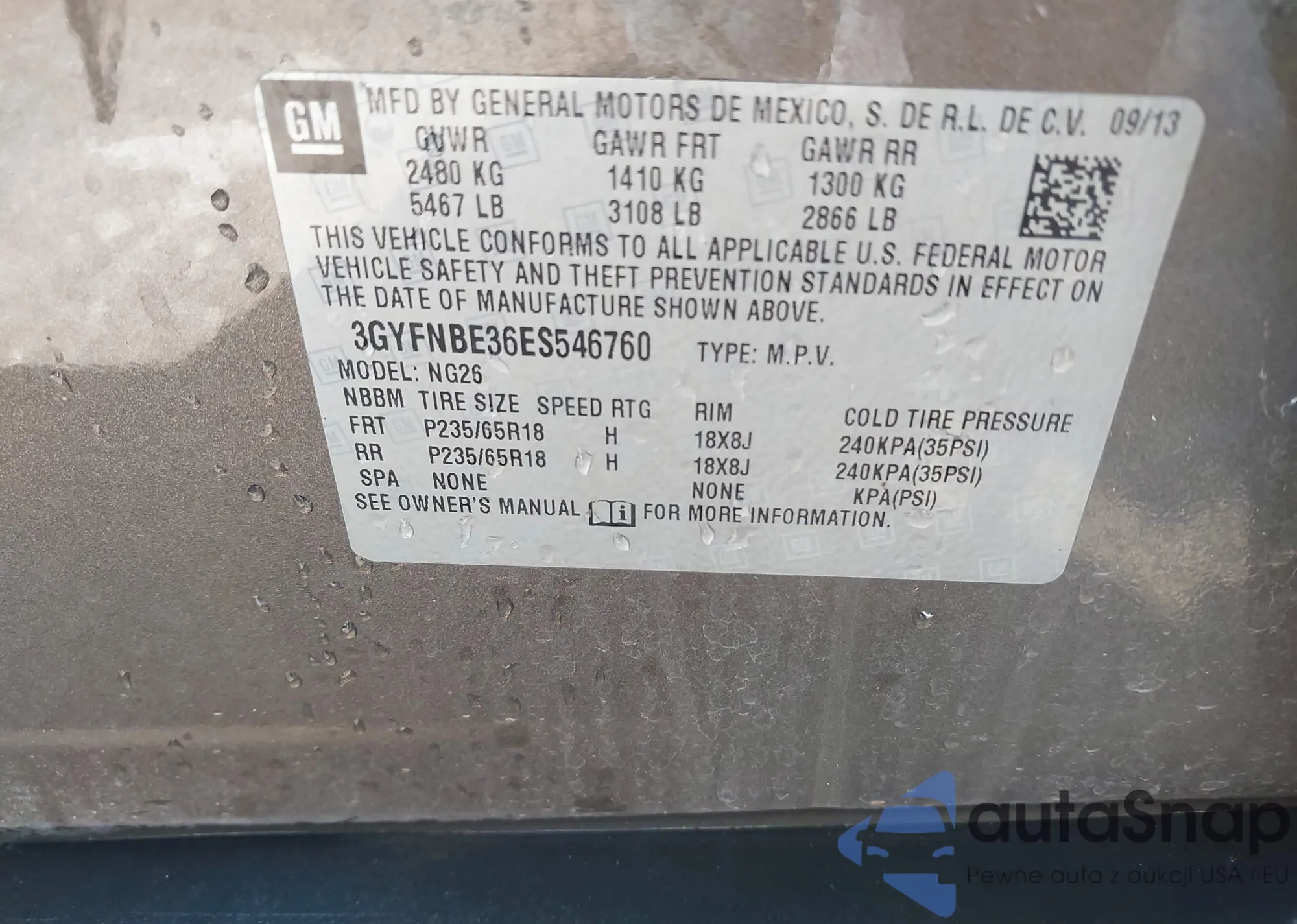 LOT: 42708906 VIN: 3GKALTEG1RL146382