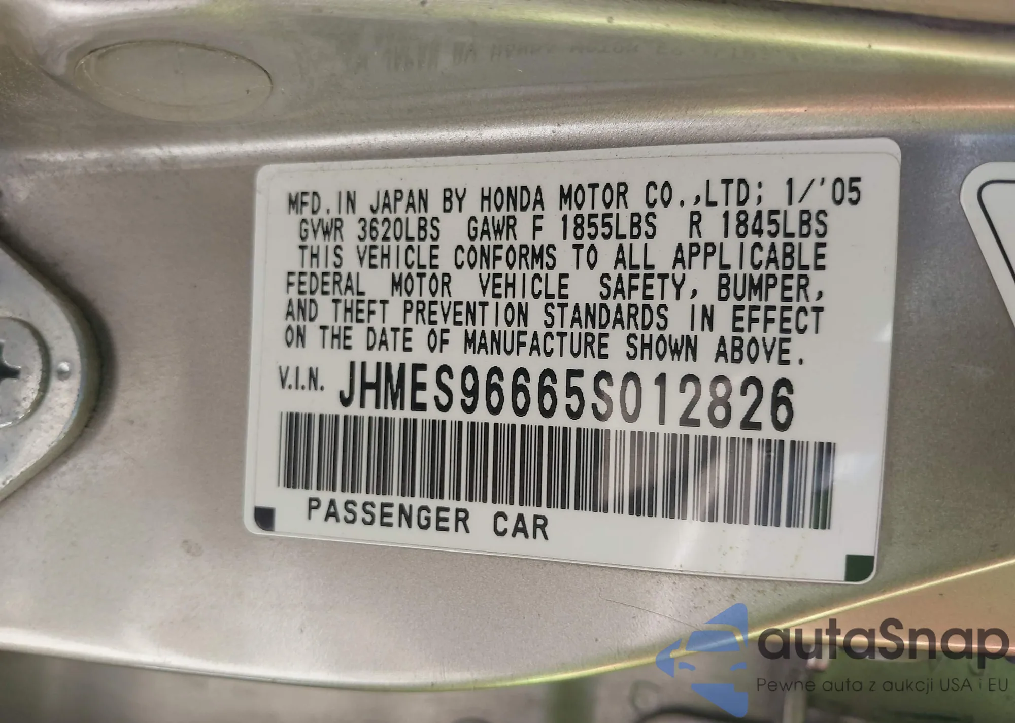 • VIN JHMES96665S012826