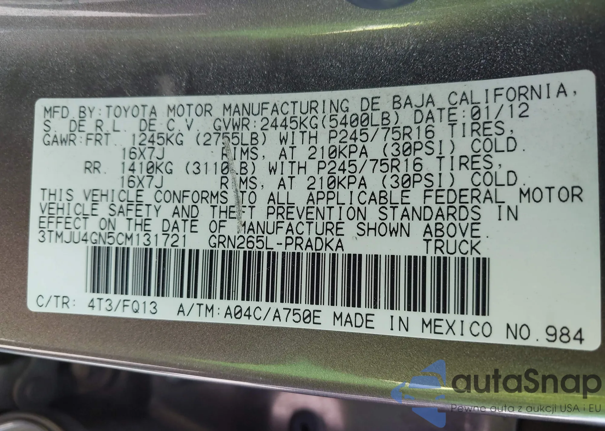 • VIN 5YFB4MDE8SP272508