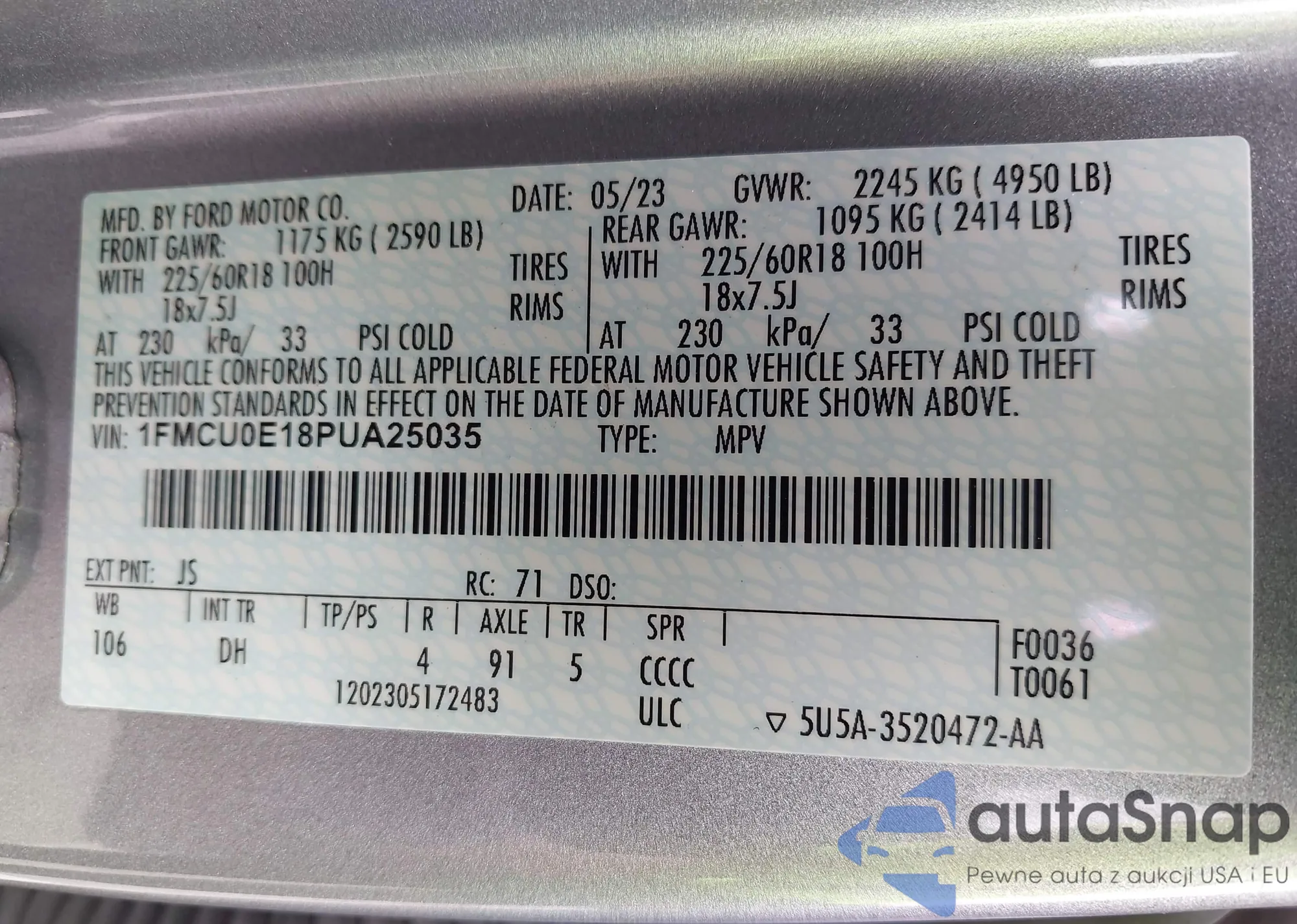 • VIN 1FMCU0E18PUA25035