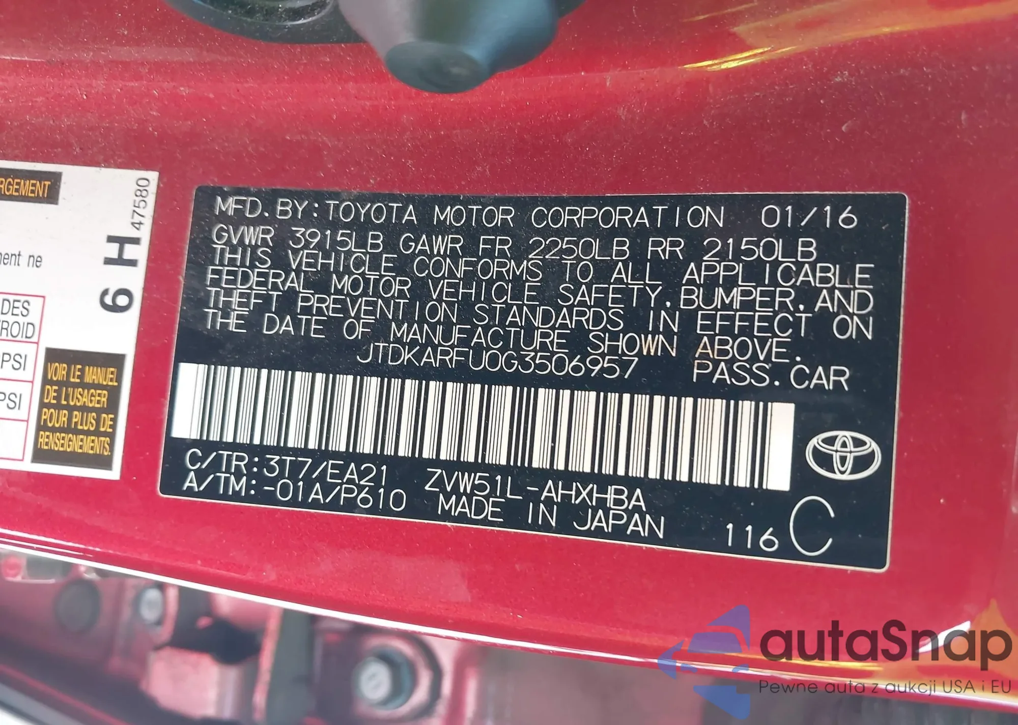 • VIN JTDKARFU0G3506957