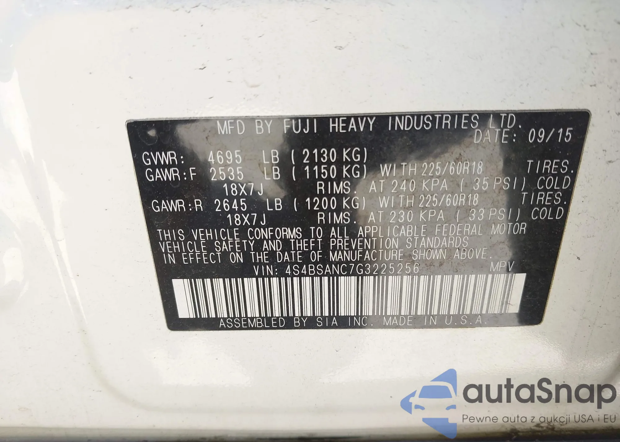 • VIN 4S4BSANC7G3225256