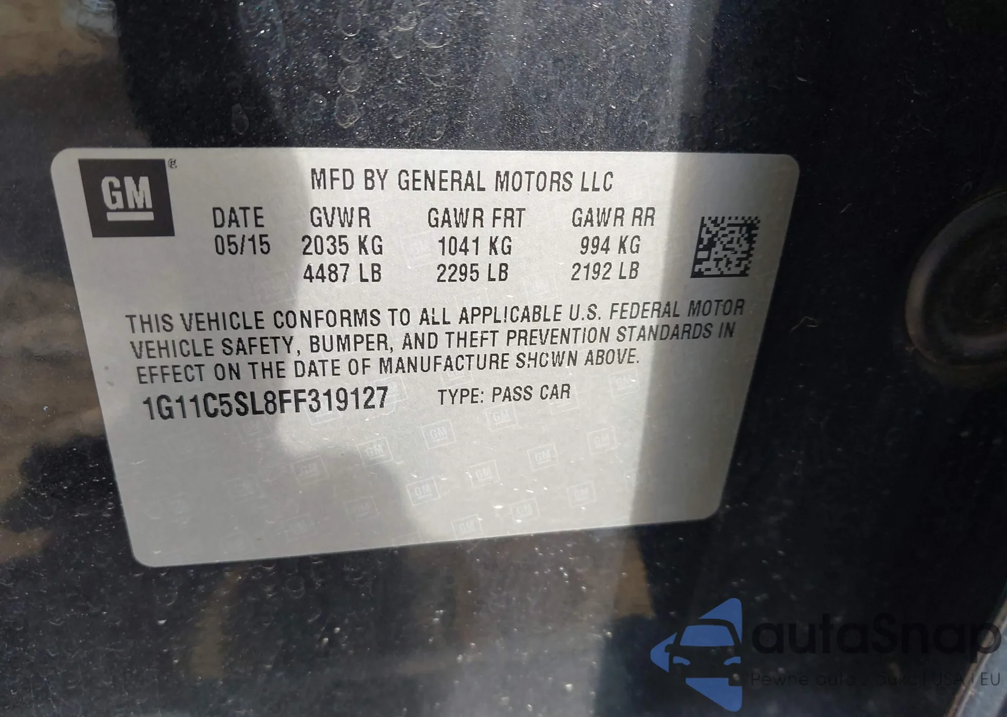 LOT: 43120242 VIN: 1G11C5SL8FF319127