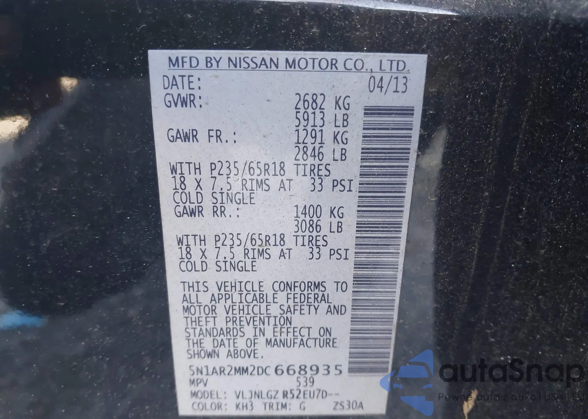 • VIN 5N1AR2MM2DC668935