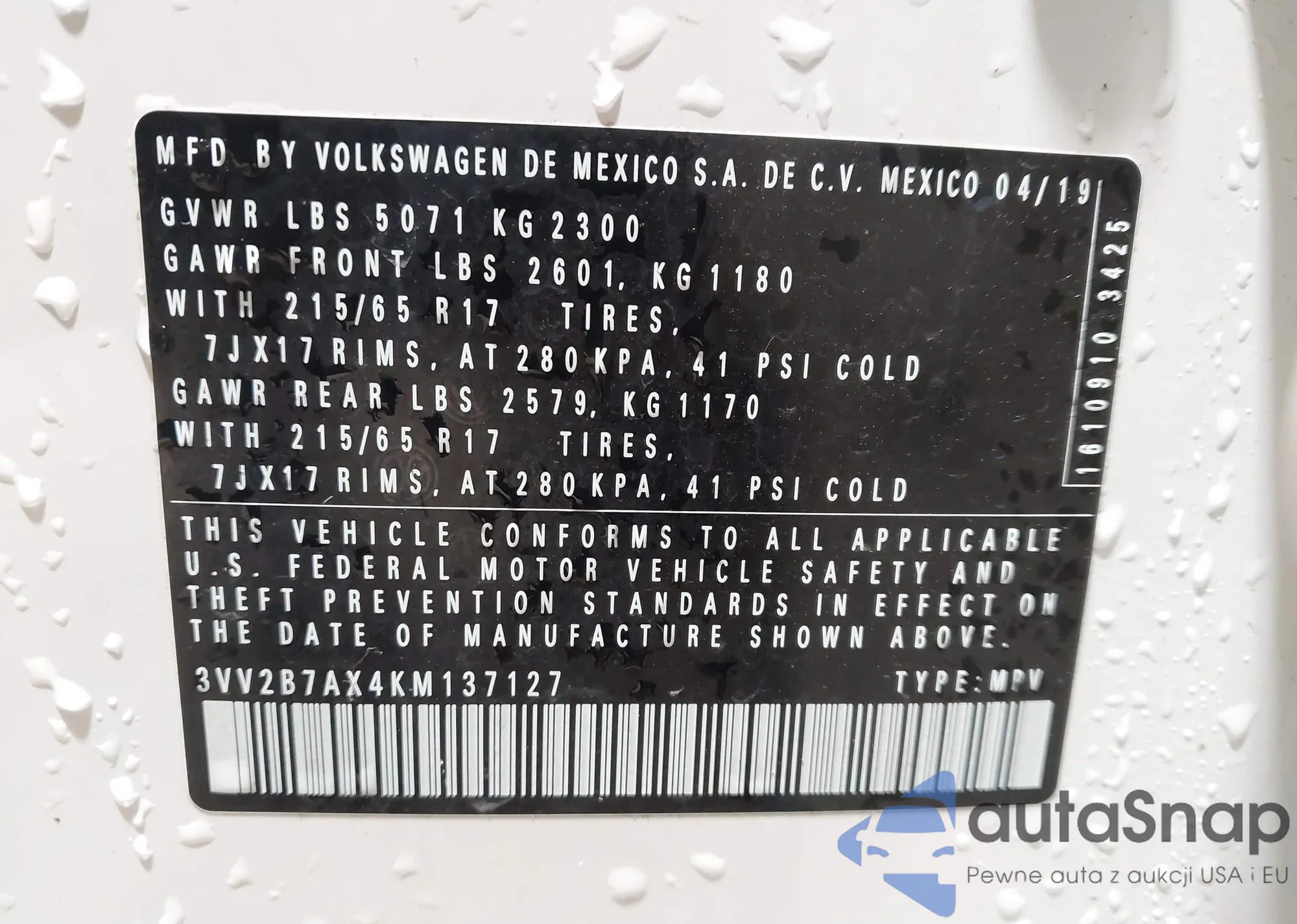 • VIN 3VV2B7AX4KM137127