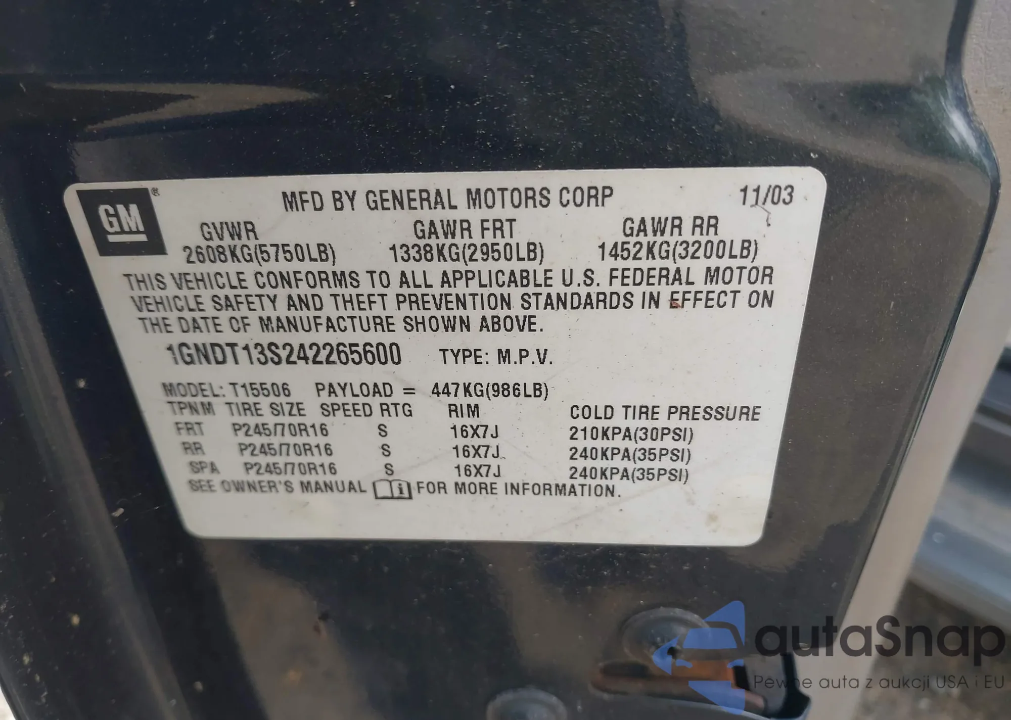 LOT: 43130396 VIN: 1GNDT13S242265600