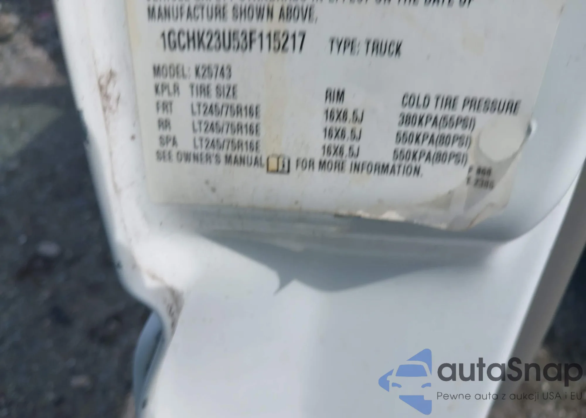 LOT: 43160267 VIN: 1FTPW12535KD94536