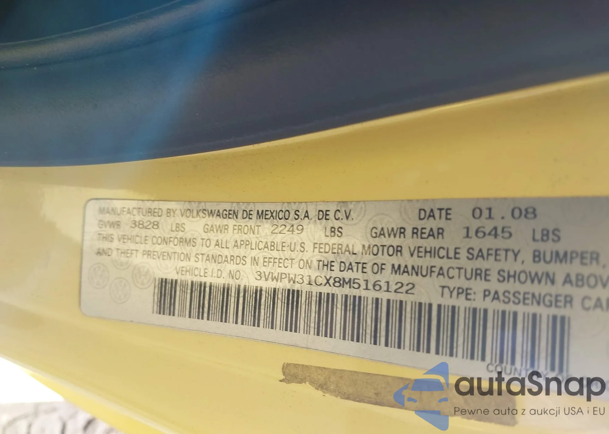• VIN 3VWPW31CX8M516122