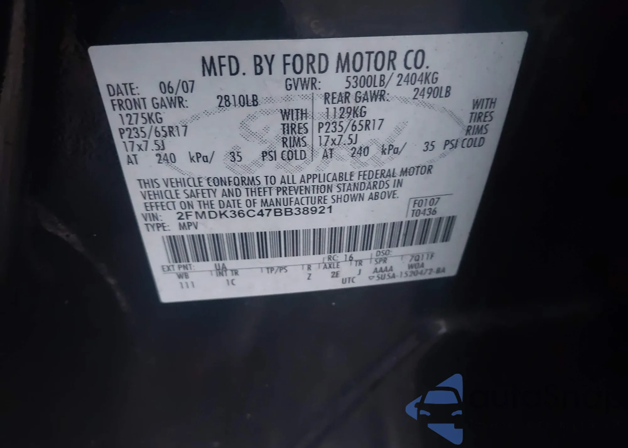 • VIN 2FMDK36C87BB32054