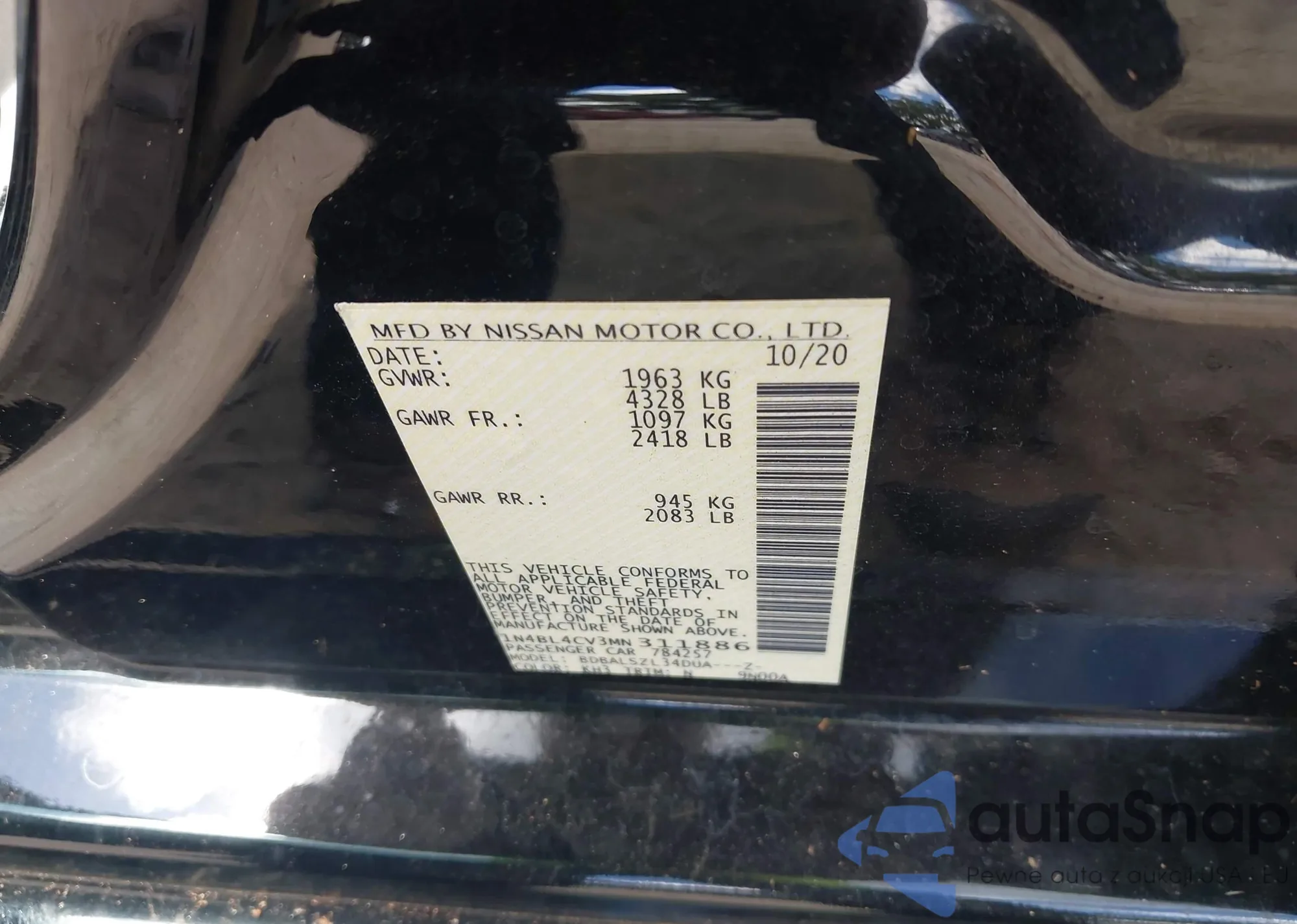LOT: 42988571 VIN: 1N4BL4CV3MN311886