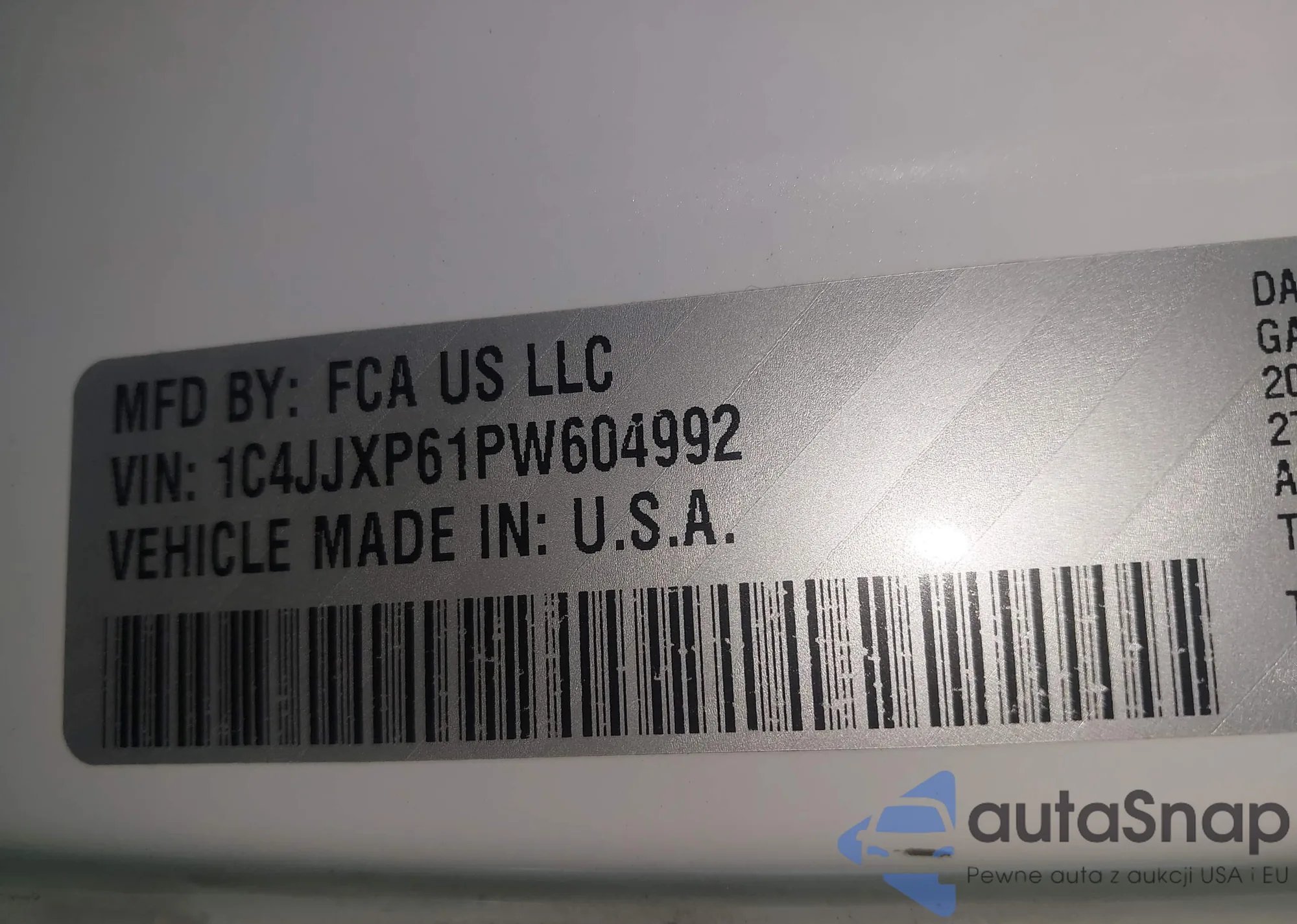 • VIN 1C4JJXP61PW604992