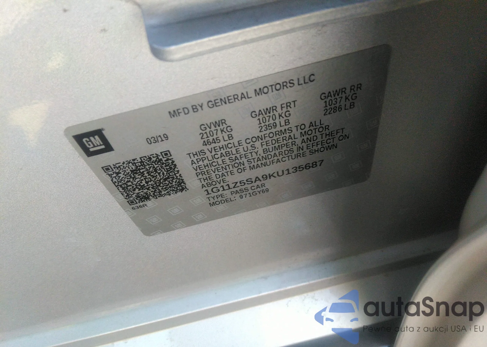 LOT: 42757327 VIN: 1G11Z5SA9KU135687