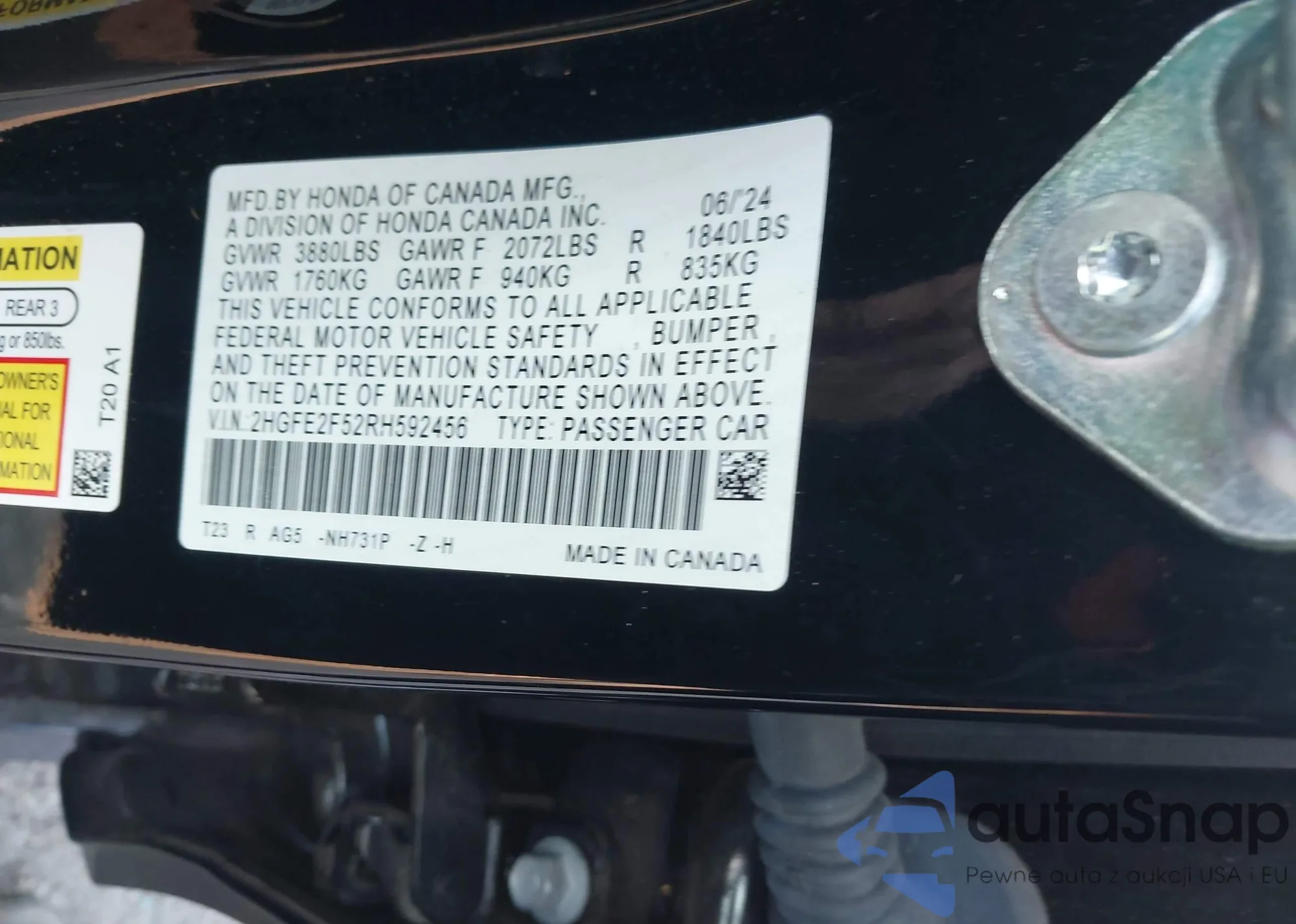 • VIN 2HGFE2F52RH592456