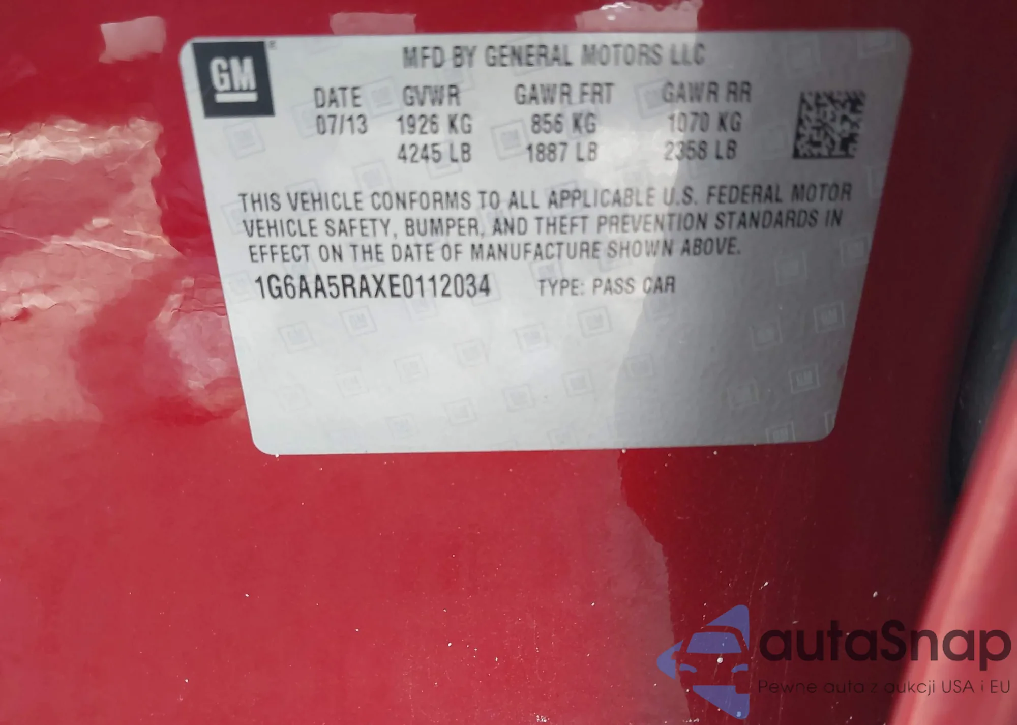 • VIN 1G6AA5RAXE0112034