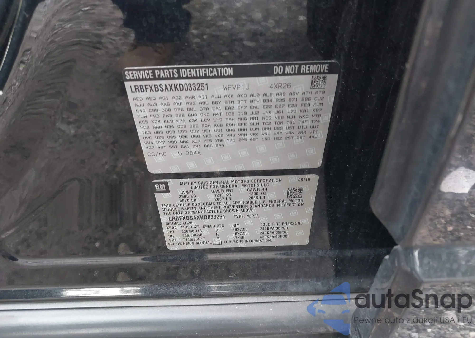 LOT: 42927435 VIN: LRBFXBSAXKD033251