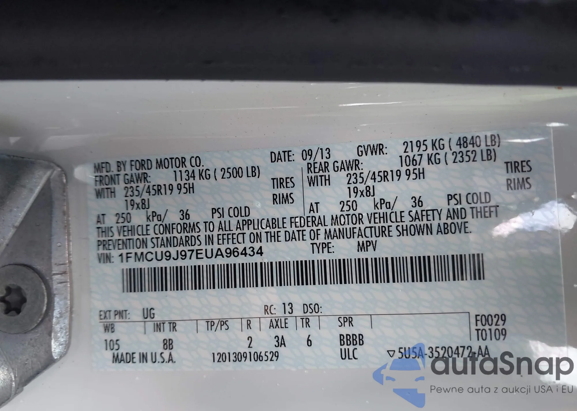 LOT: 43102097 VIN: 1FMCU9J97EUA96434
