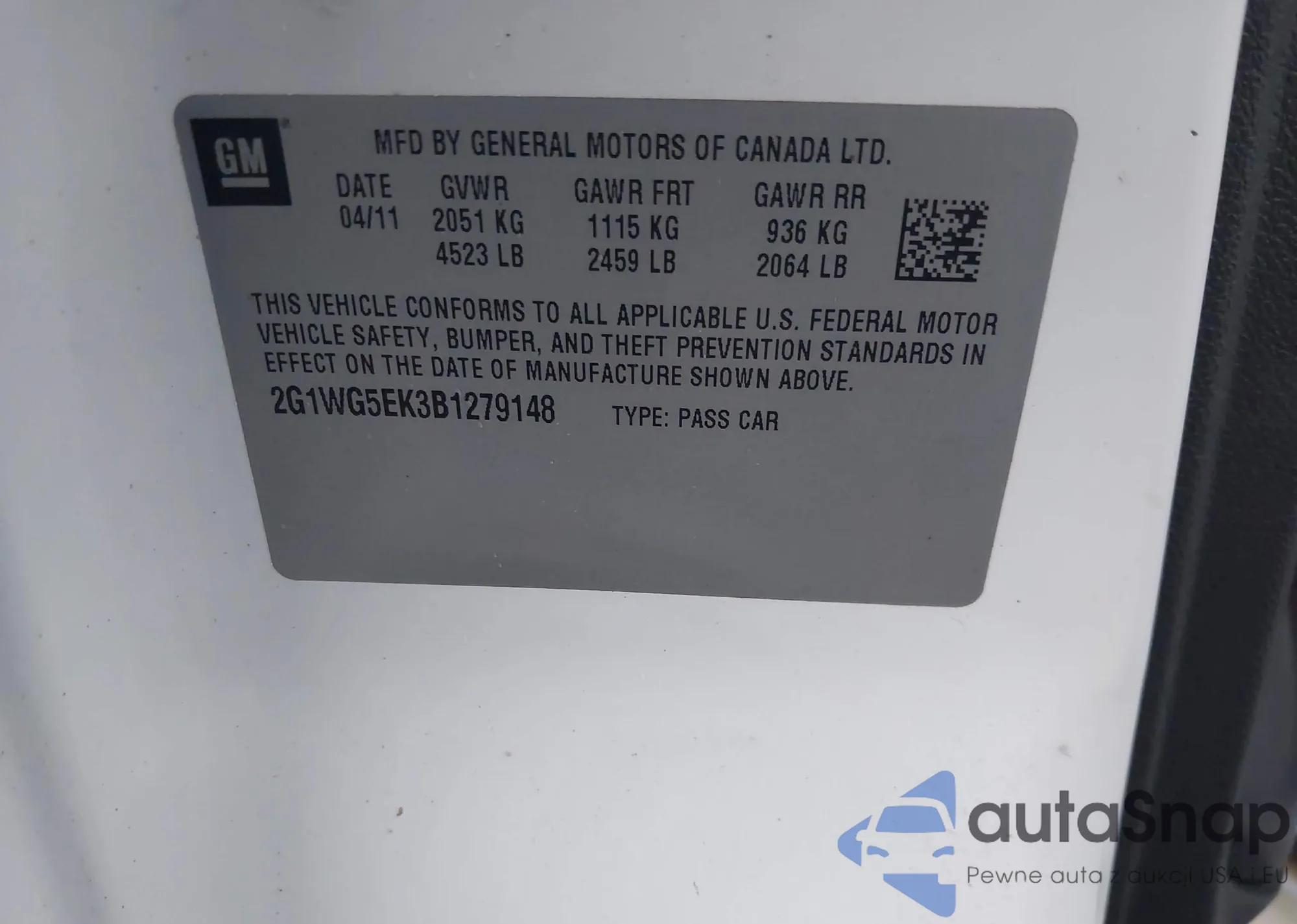 • VIN W04GW5EV6B1081401