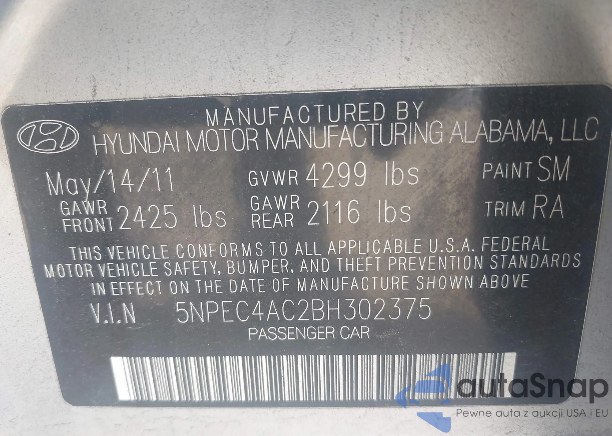 • VIN 5NPEC4AC8CH371380