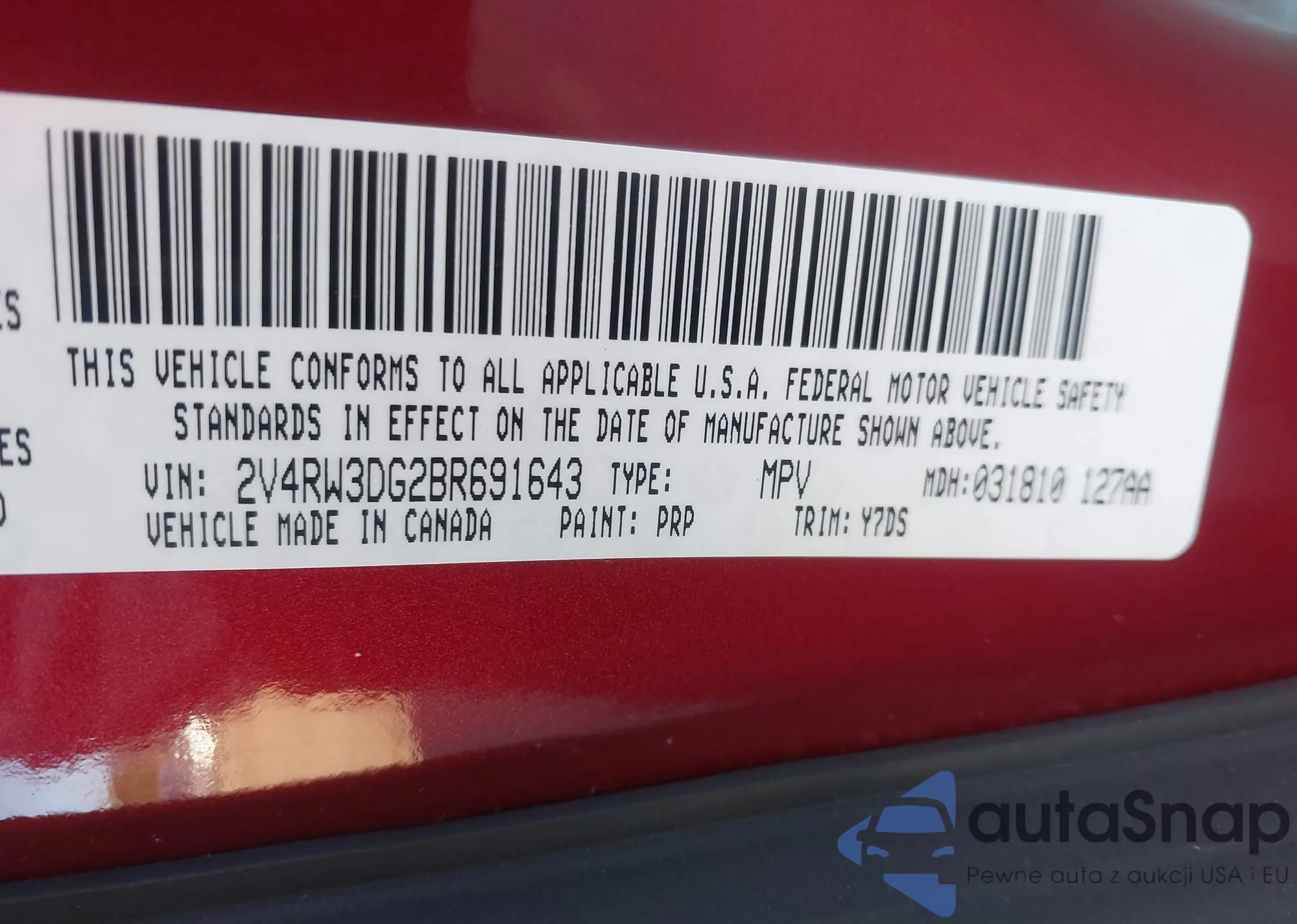 LOT: 43319944 VIN: 2V4RW3DG2BR691643