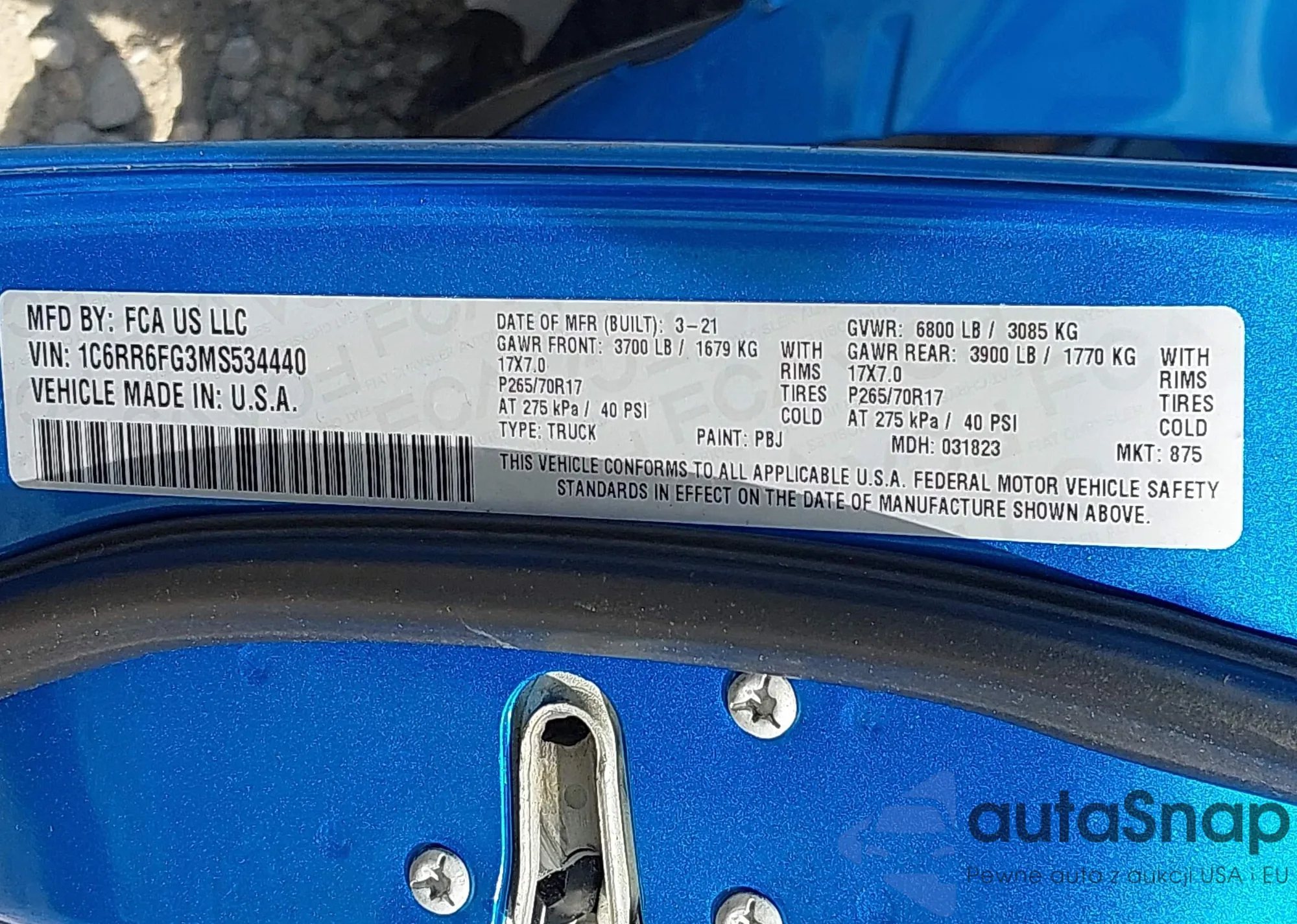 • VIN 1C6RR6FG3MS534440