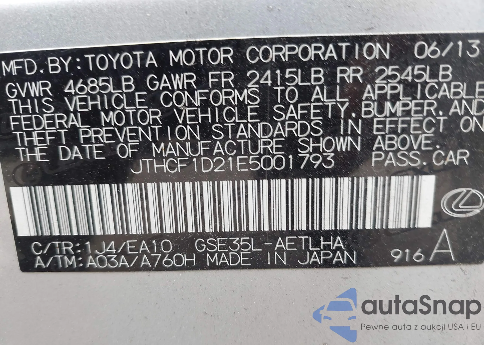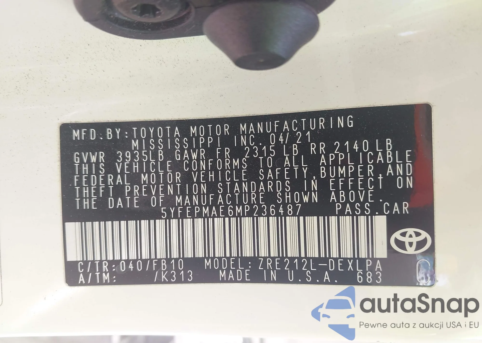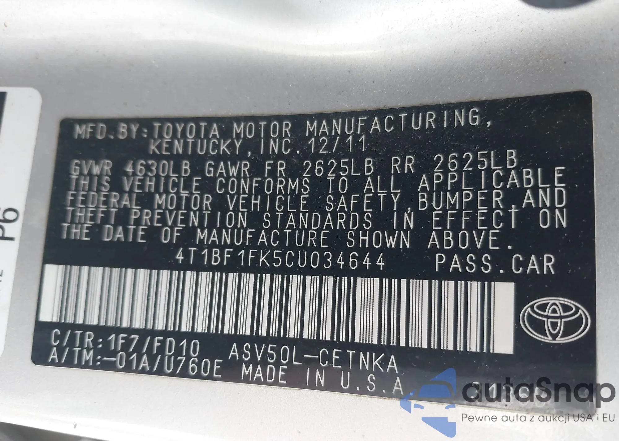 LOT: 43359167 VIN: 4T1F11AK3PU183390