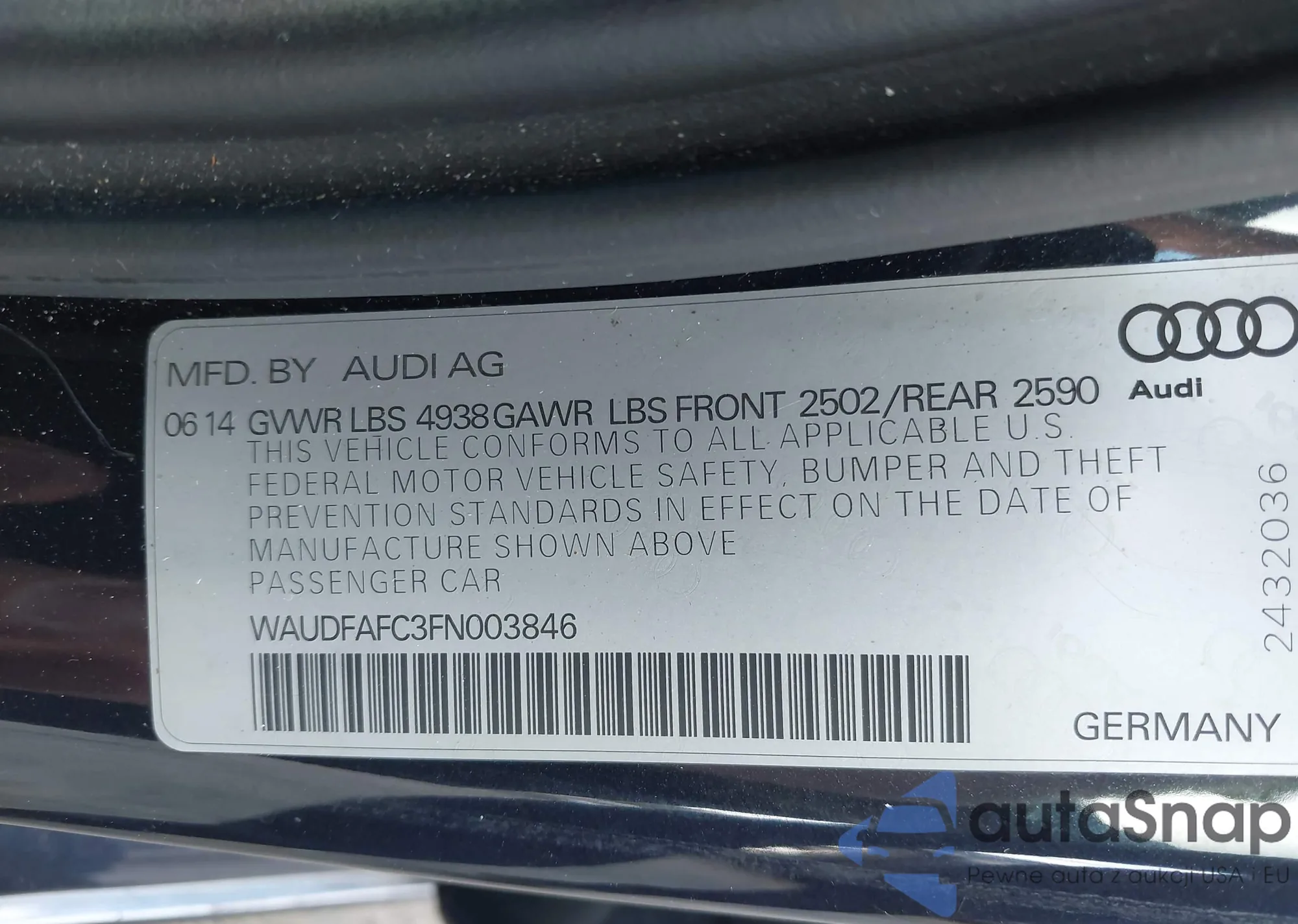 • VIN WAUDFAFC3FN003846