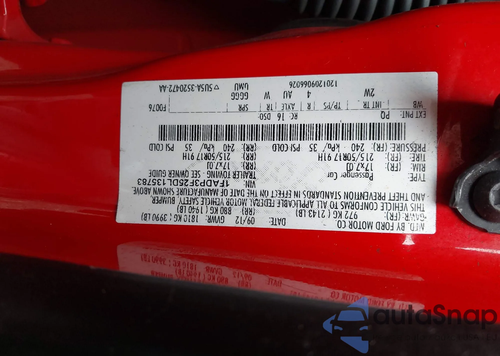 • VIN 1FADP3F25DL135783