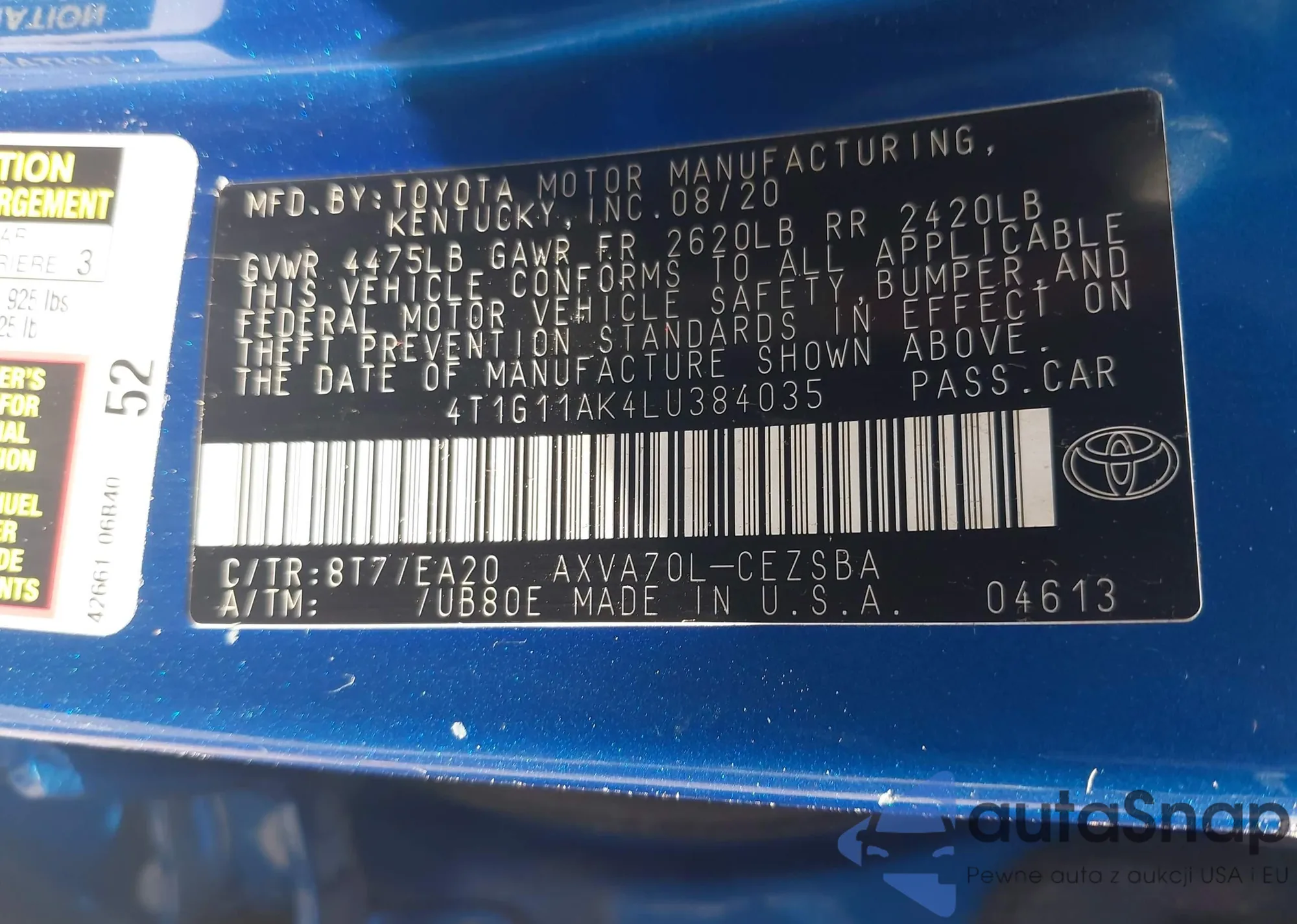 LOT: 42686723 VIN: 4T1G11AK4LU384035