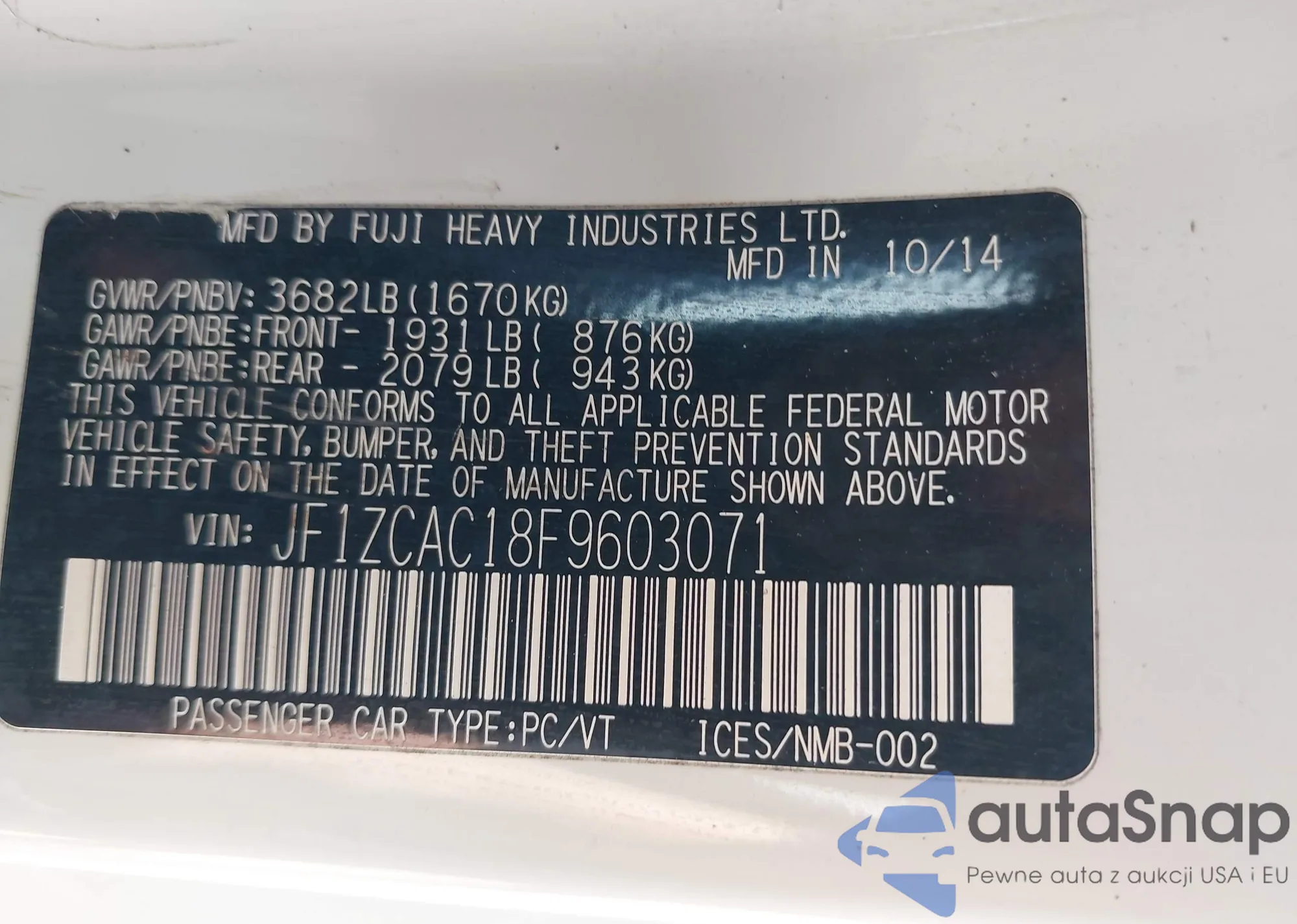 • VIN JF1ZCAC18F9603071