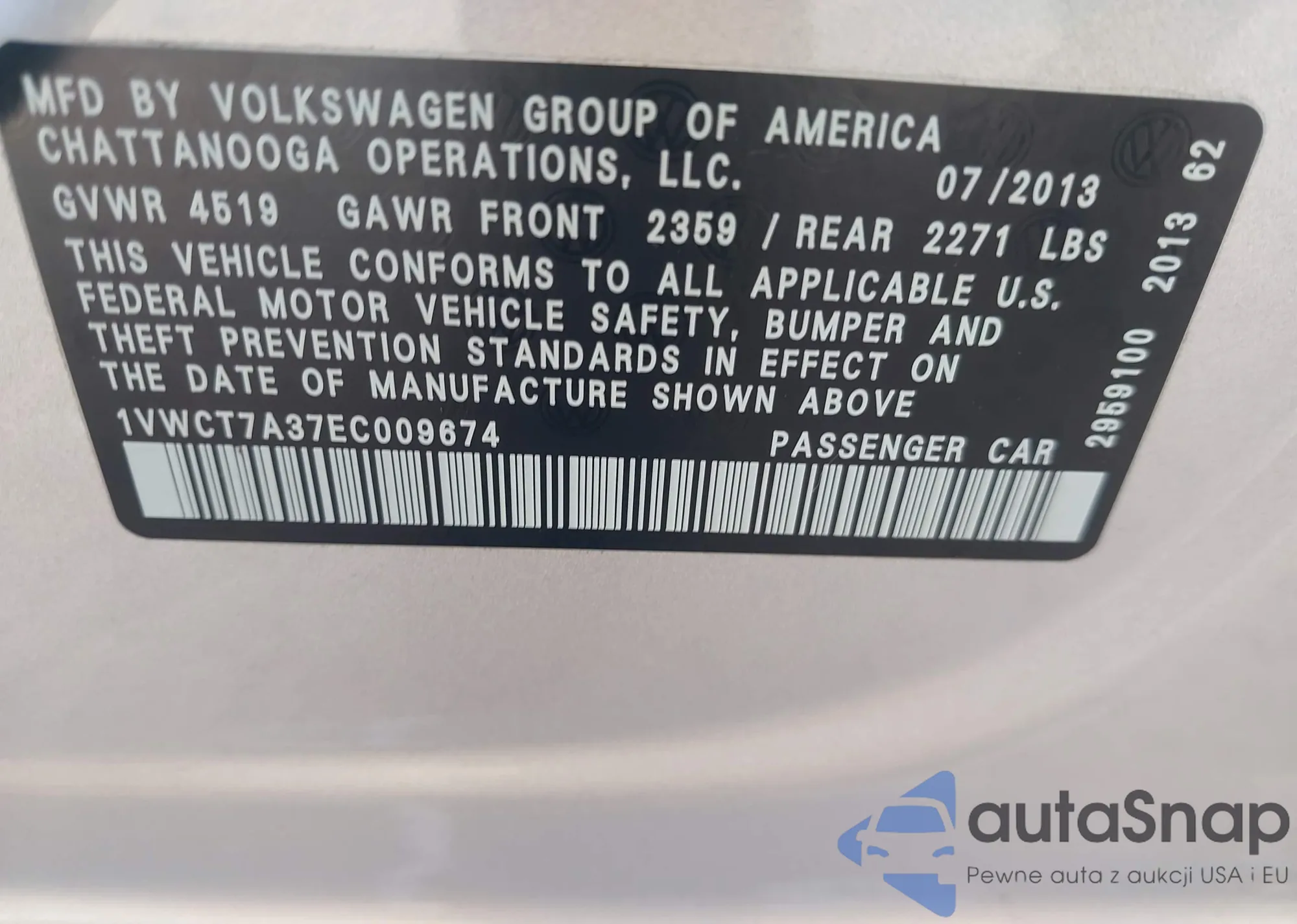 • VIN 1VWCT7A37EC009674