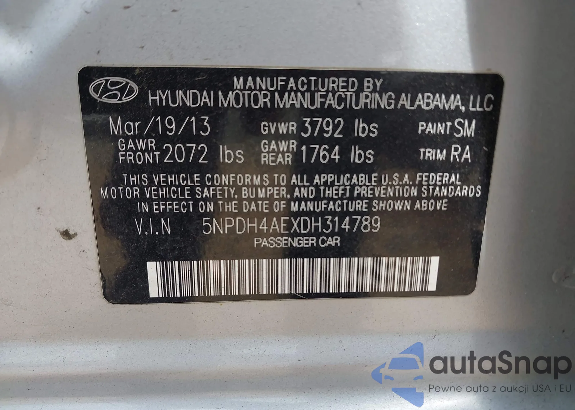 • VIN 5NPDH4AEXDH314789