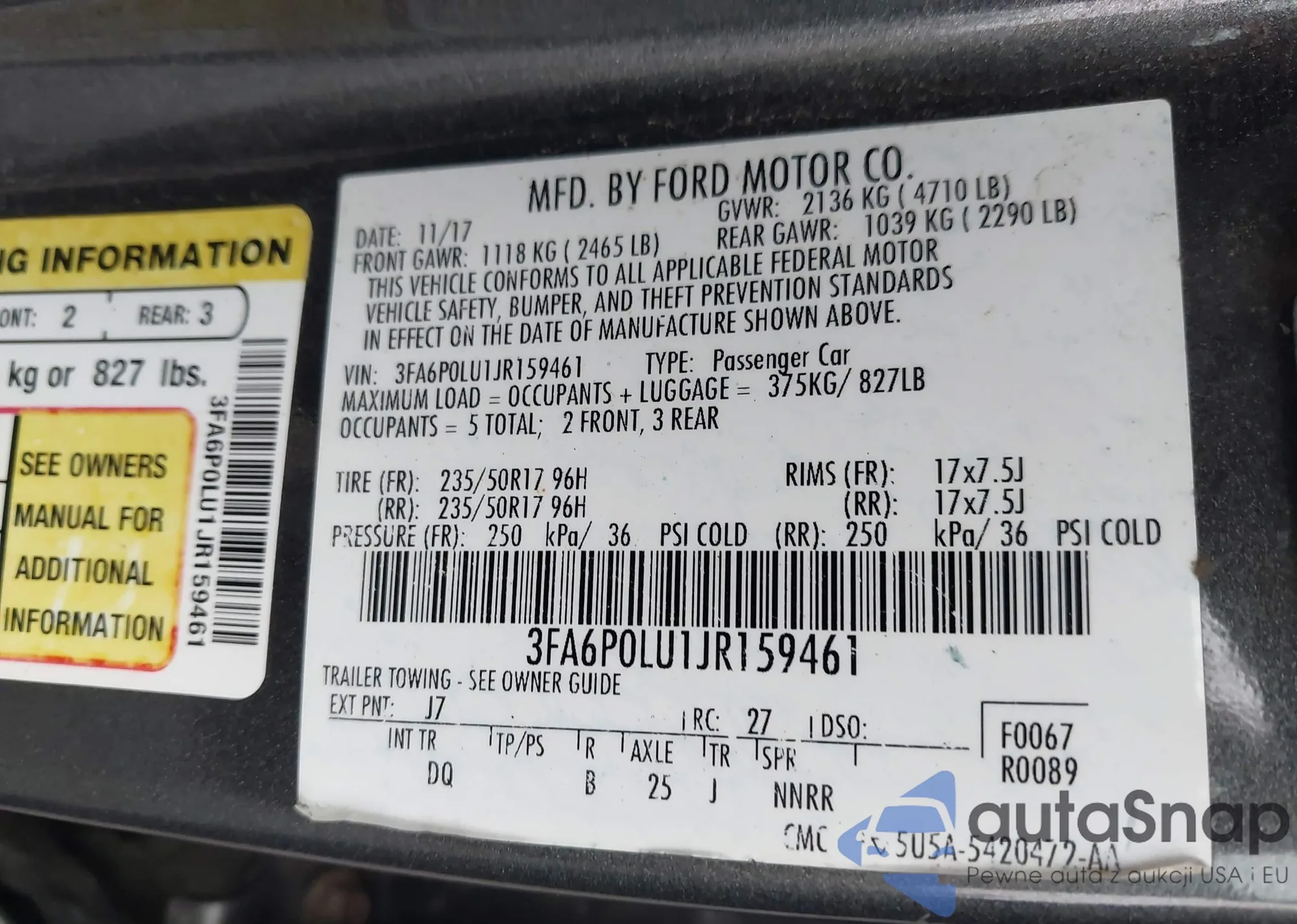 • VIN 3FA6P0LU1JR159461