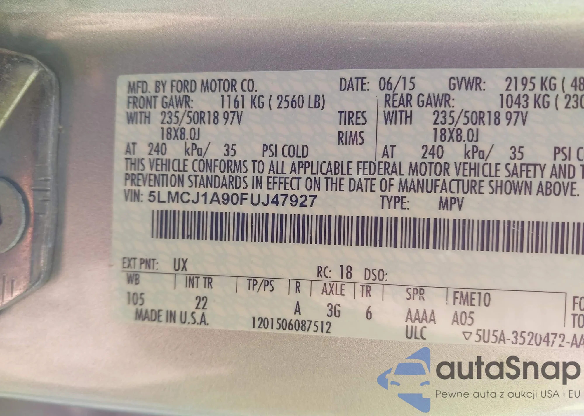 LOT: 42964670 VIN: 2FMDK3GC5ABB27223
