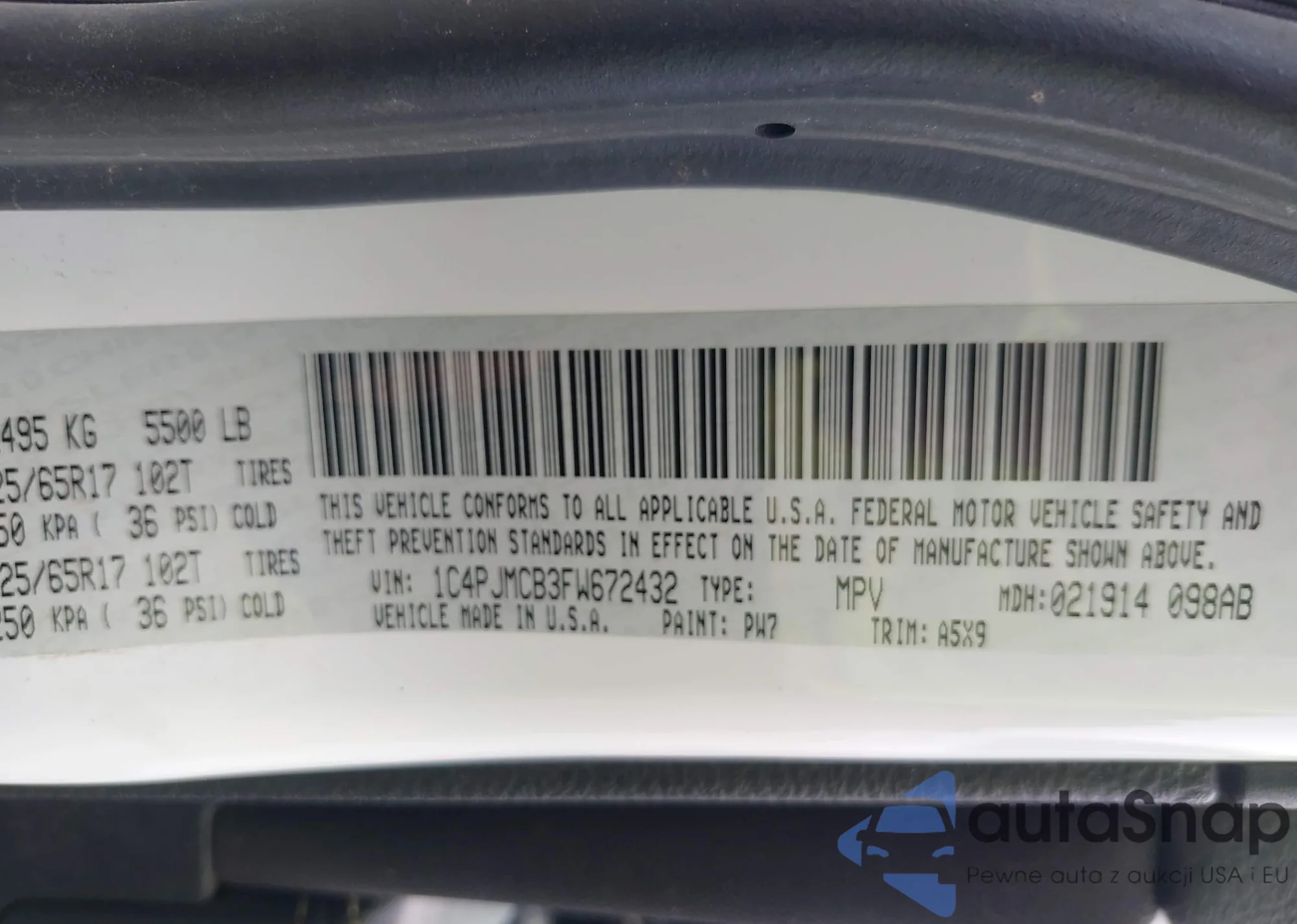 • VIN 1C4PJMCB3FW672432