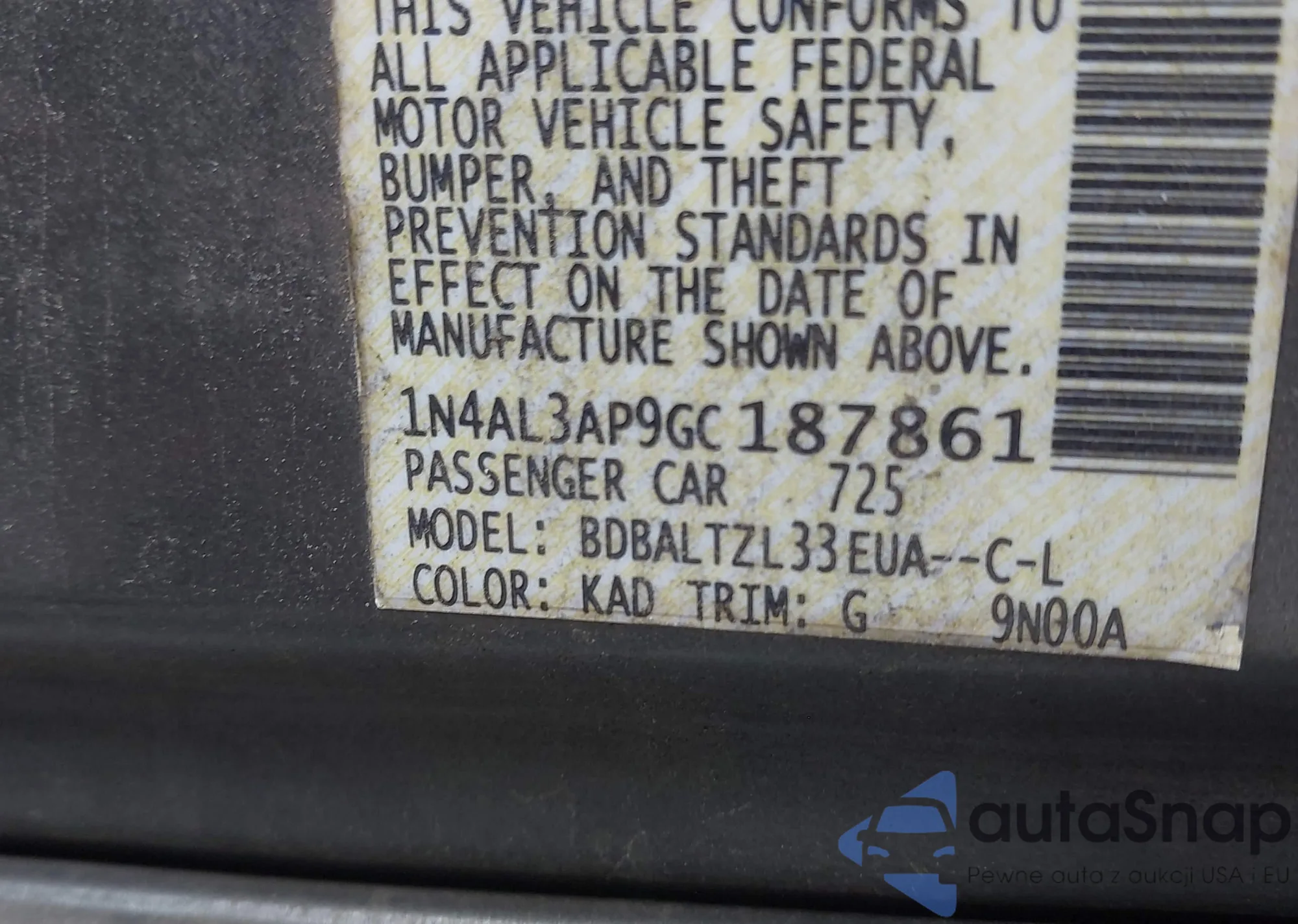 • VIN 1N4AL3AP9GC187861