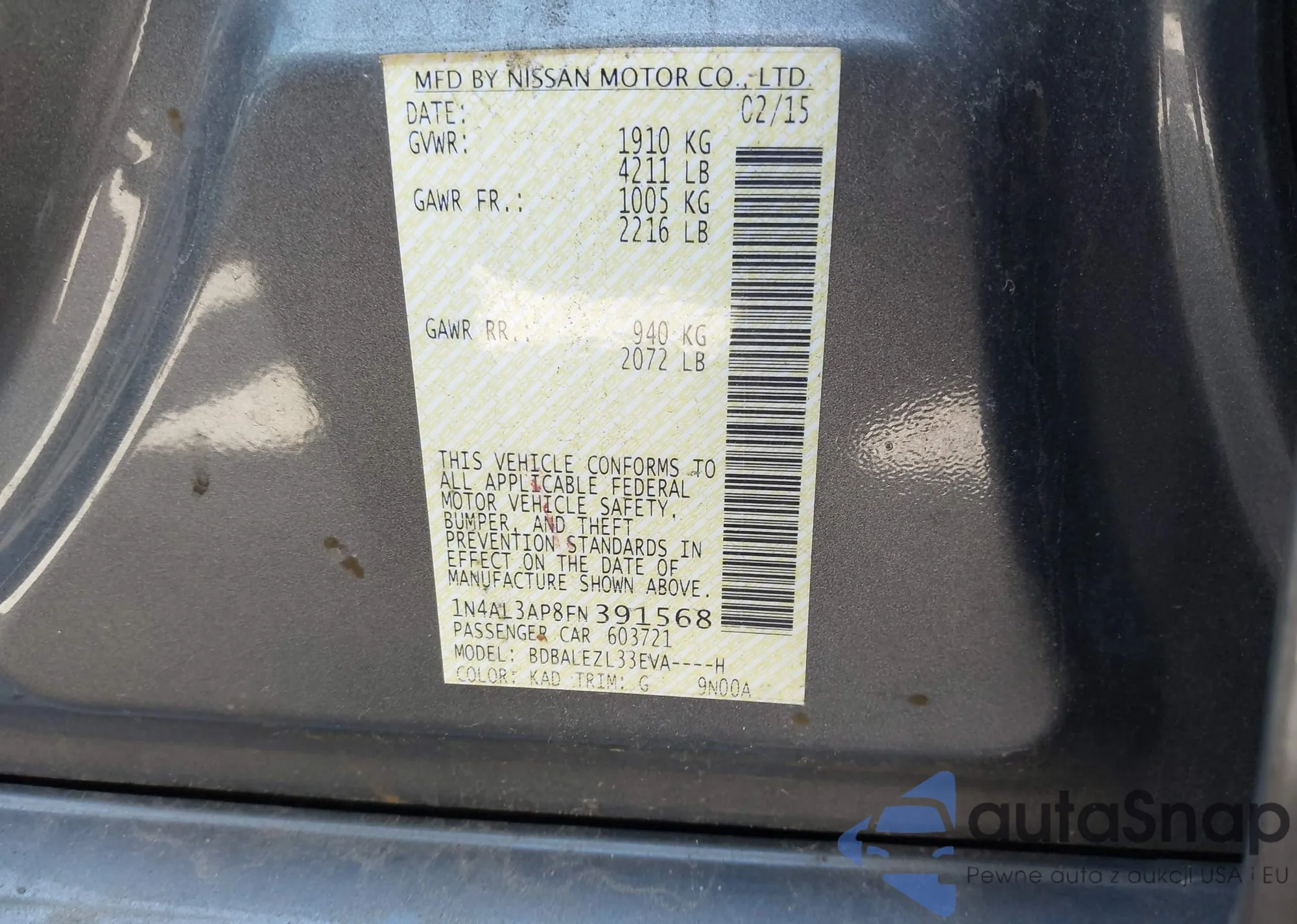 LOT: 43207424 VIN: 1N4AL3AP8FN391568