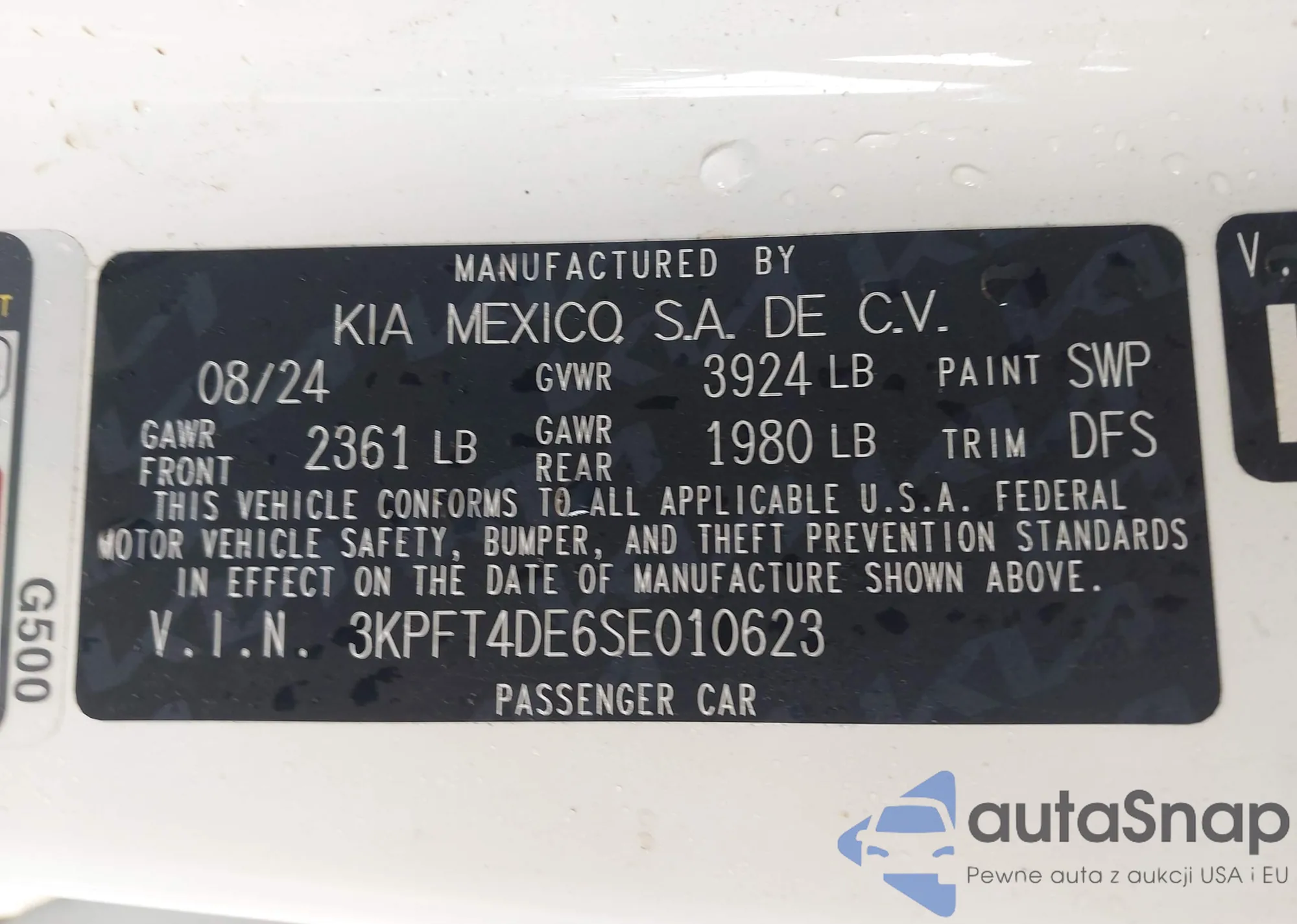 LOT: 42680398 VIN: 3KPFT4DE6SE010623