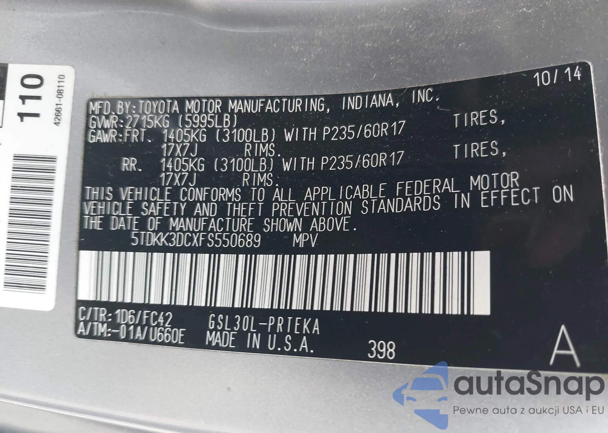 • VIN 5TDKK3DCXFS550689