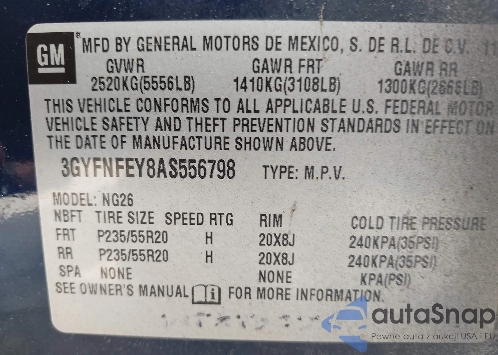 • VIN 3GYFNFEY8AS556798