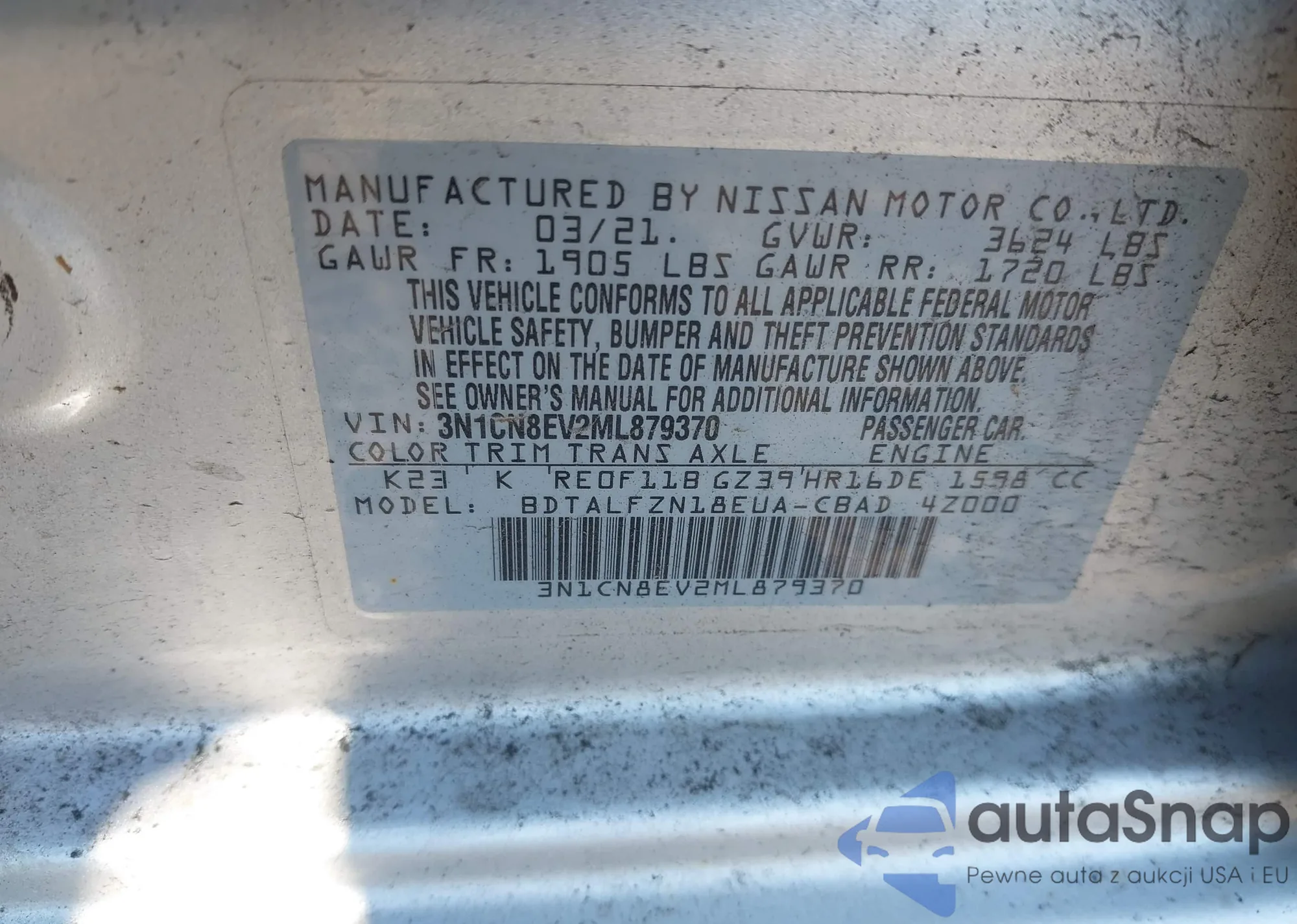 • VIN 3N1CN8EV2ML879370