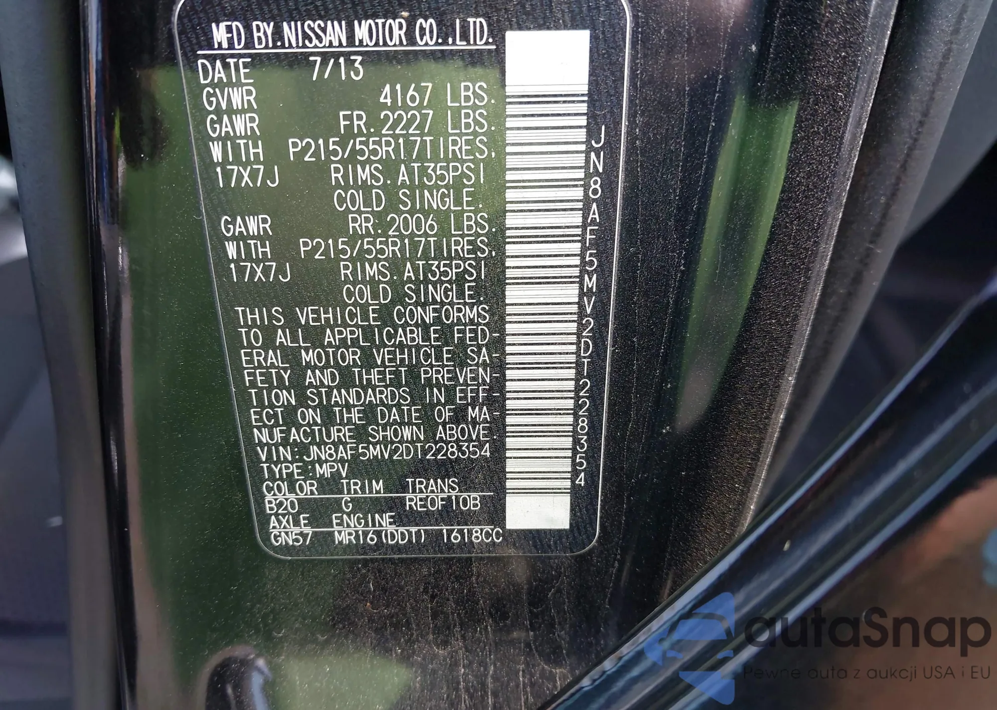 LOT: 43156929 VIN: JN8AF5MV2DT228354