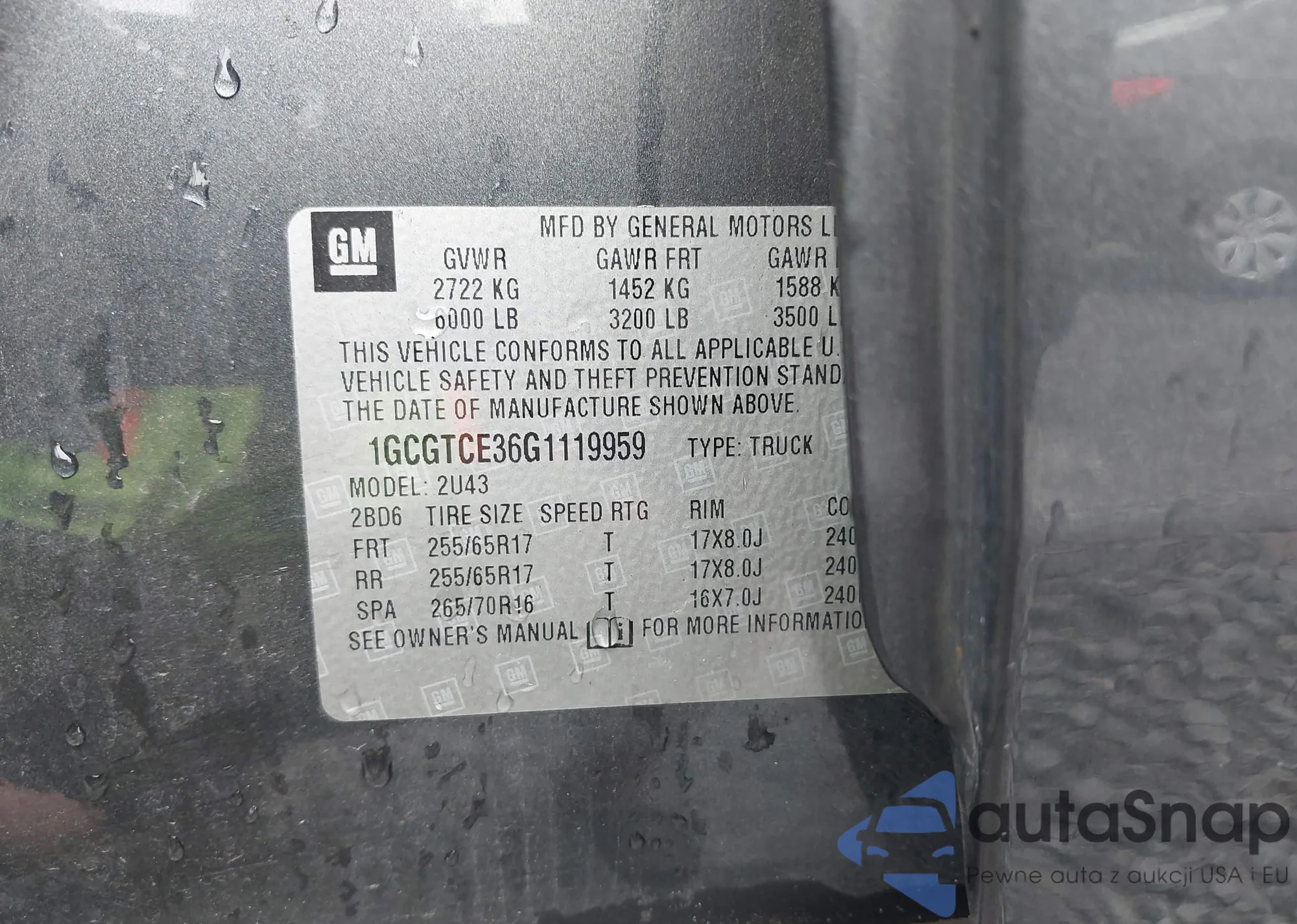 LOT: 43250986 VIN: 1GCGK13U13F120419