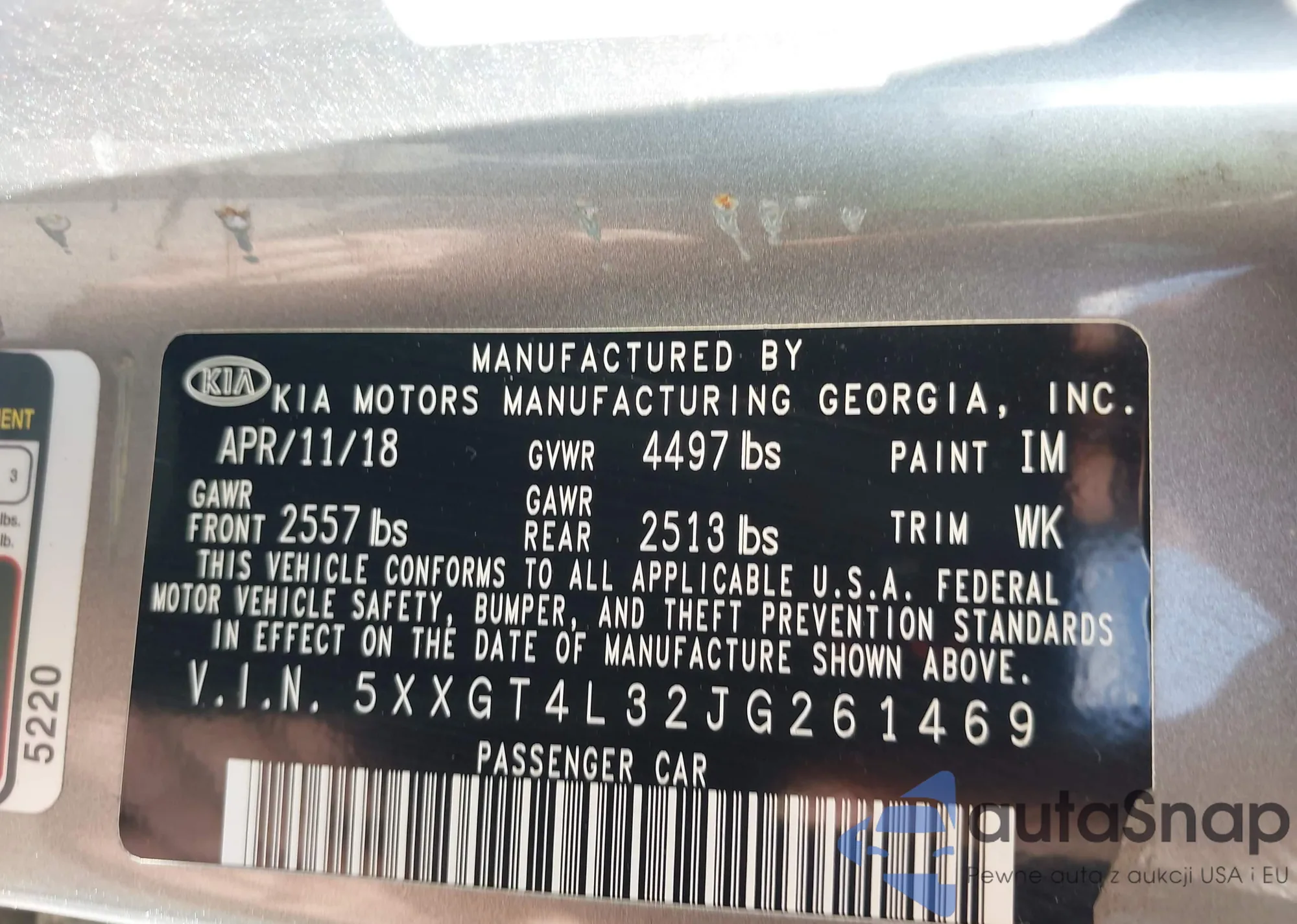 • VIN 1C4AJWAG5DL507898