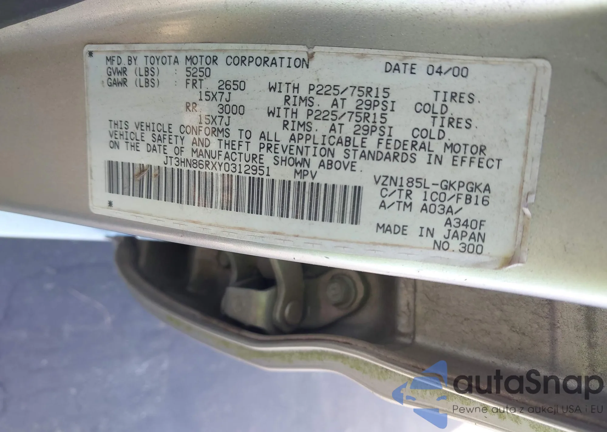 • VIN JT3HN86RXY0312951