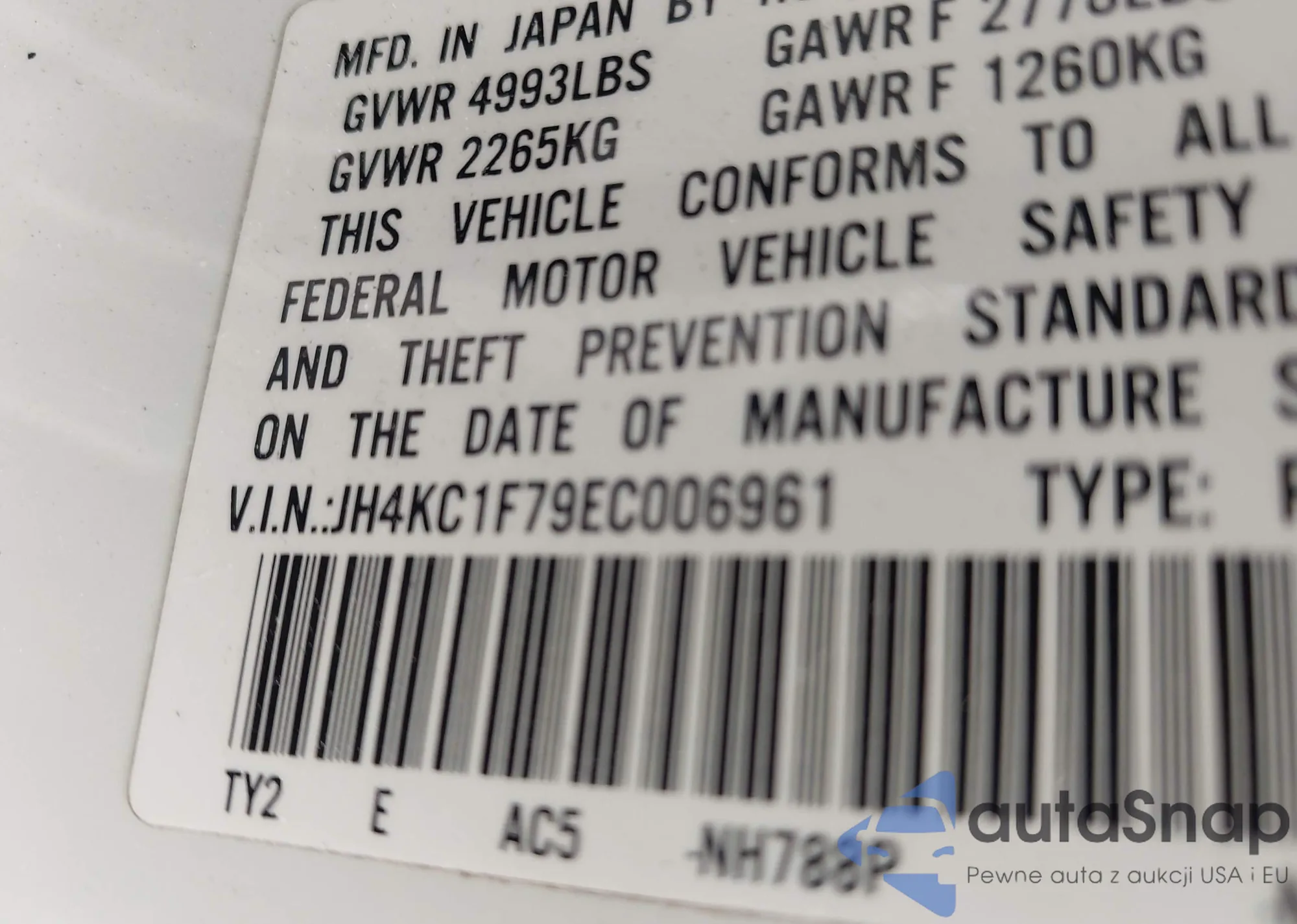 LOT: 43337971 VIN: 1HGCR2F87HA196571