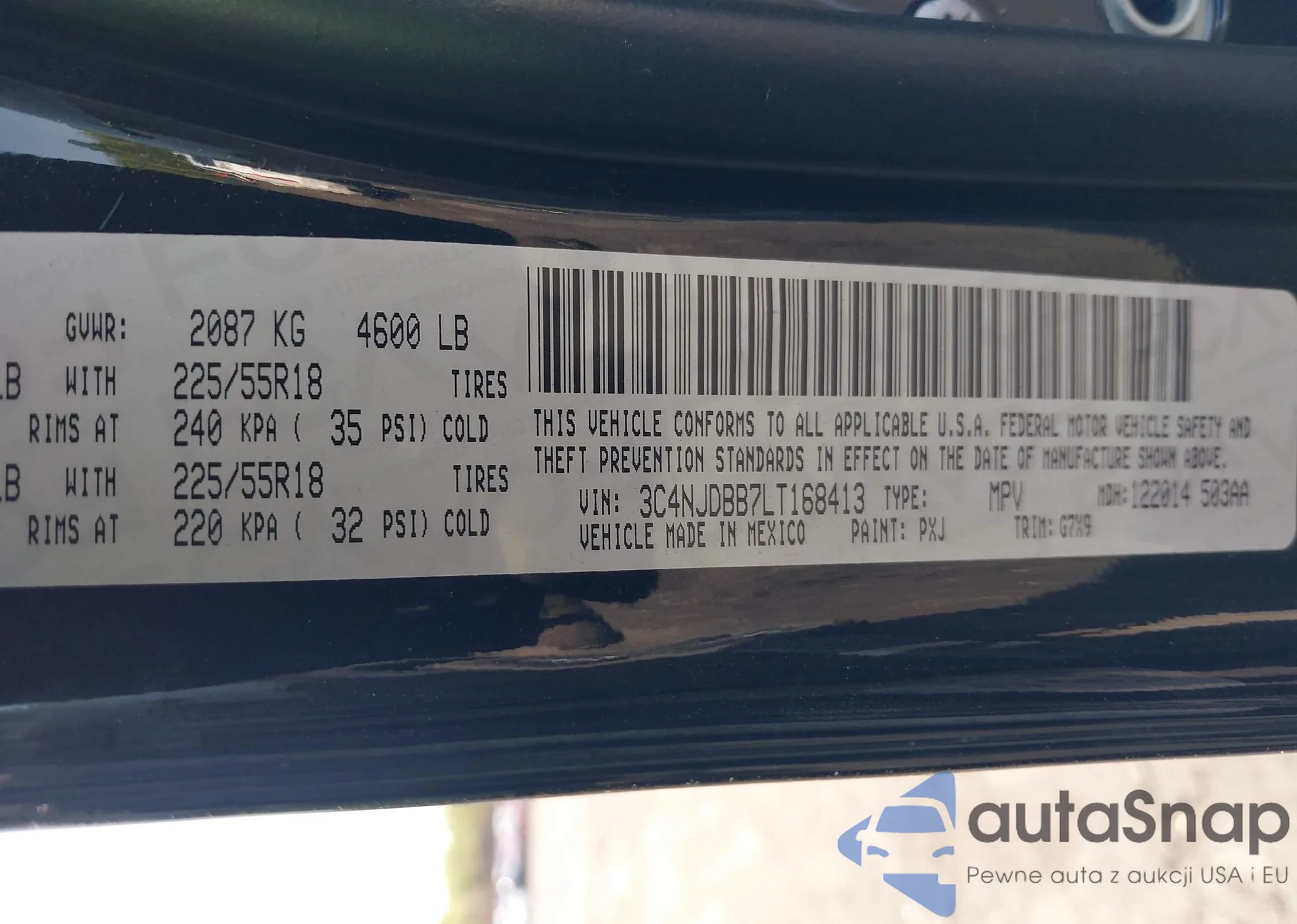 • VIN 3C4NJDBB7LT168413