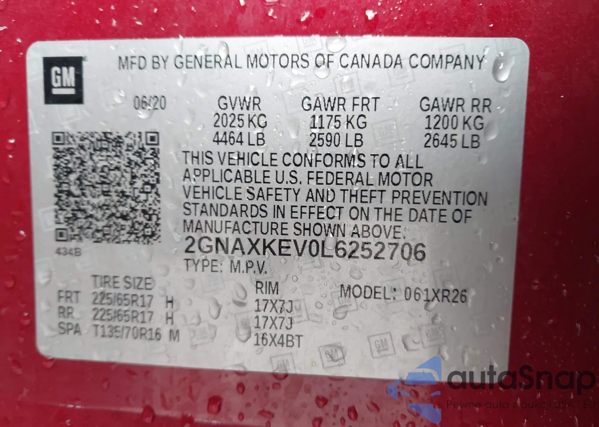 • VIN 2GNAXKEV0L6252706